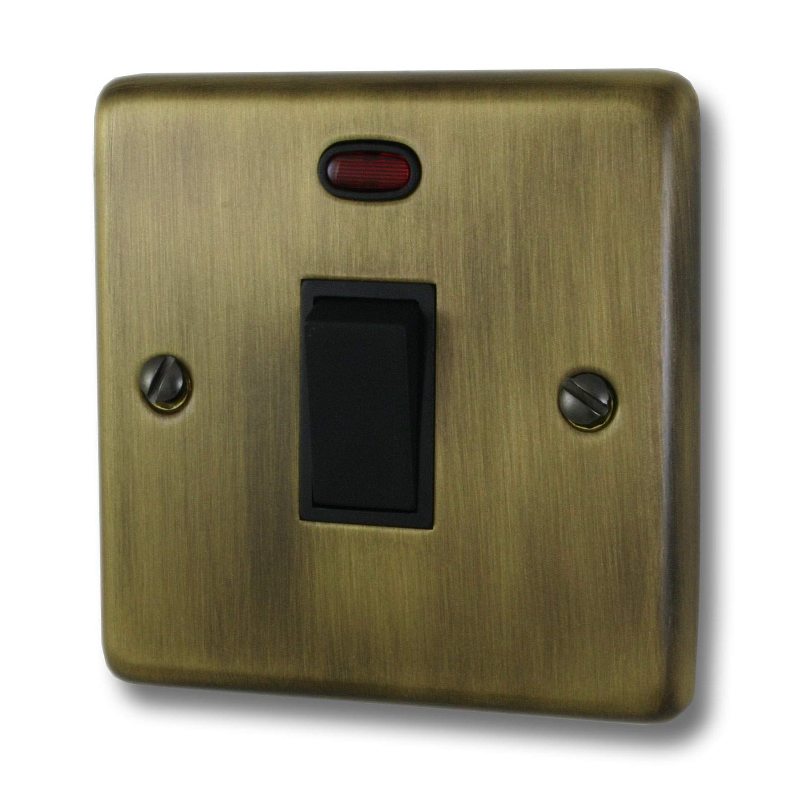 Antique Brass 20A DP Switch with Neon (Black Switch) - G+H CAB26B