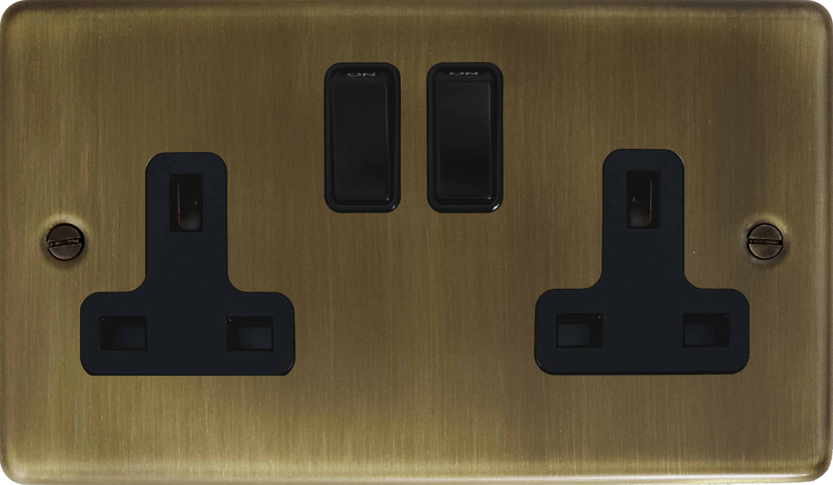 Antique Brass Double Socket (Black Switch) - G+H CAB10B