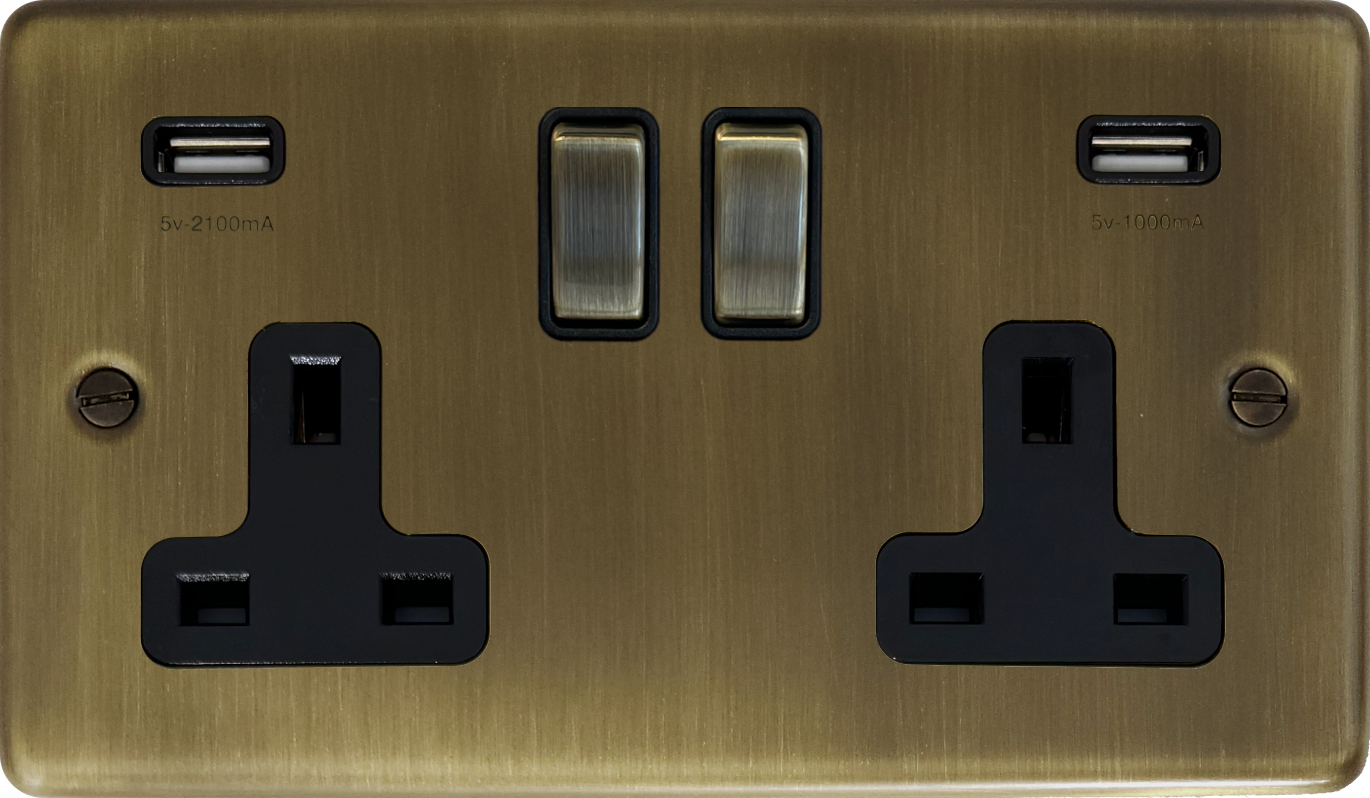 Antique Brass Double Socket with USB (Antique Brass Switch) - G+H CAB3910