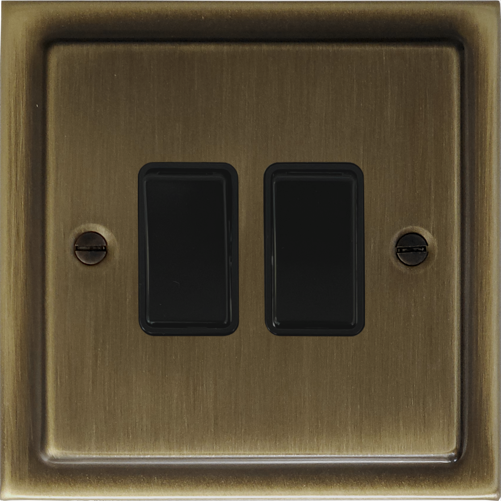 Antique Brass Switch (2 Gang/Black Switches) - G+H TAB2B