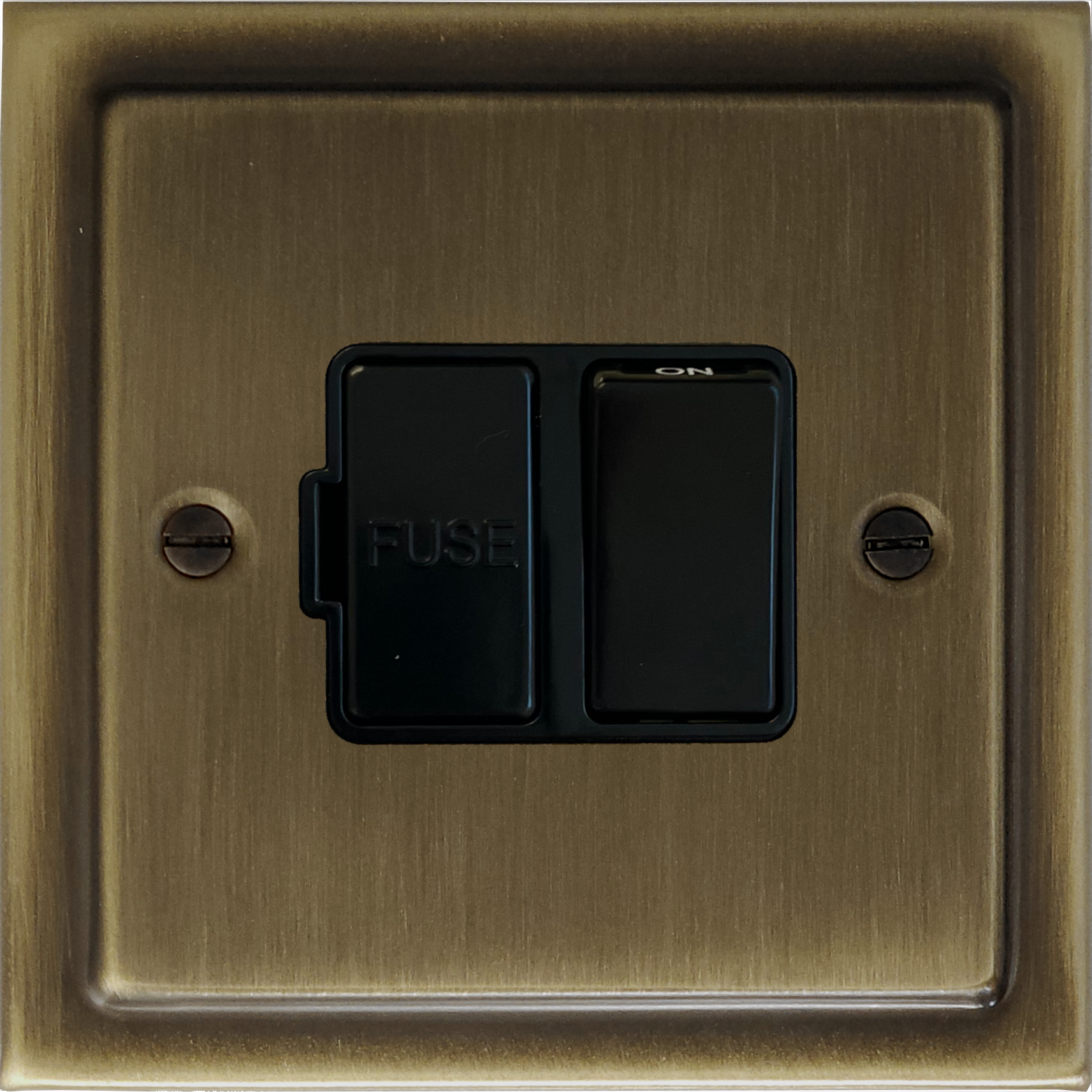 Antique Brass Switched Fused Spur (Black Switch) - G+H TAB57B