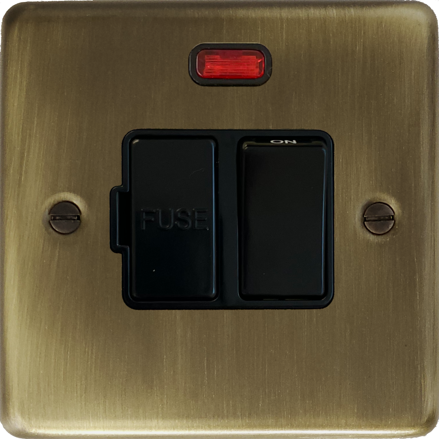 Antique Brass Switched Fused Spur with Neon (Black Switch) - G+H CAB27B
