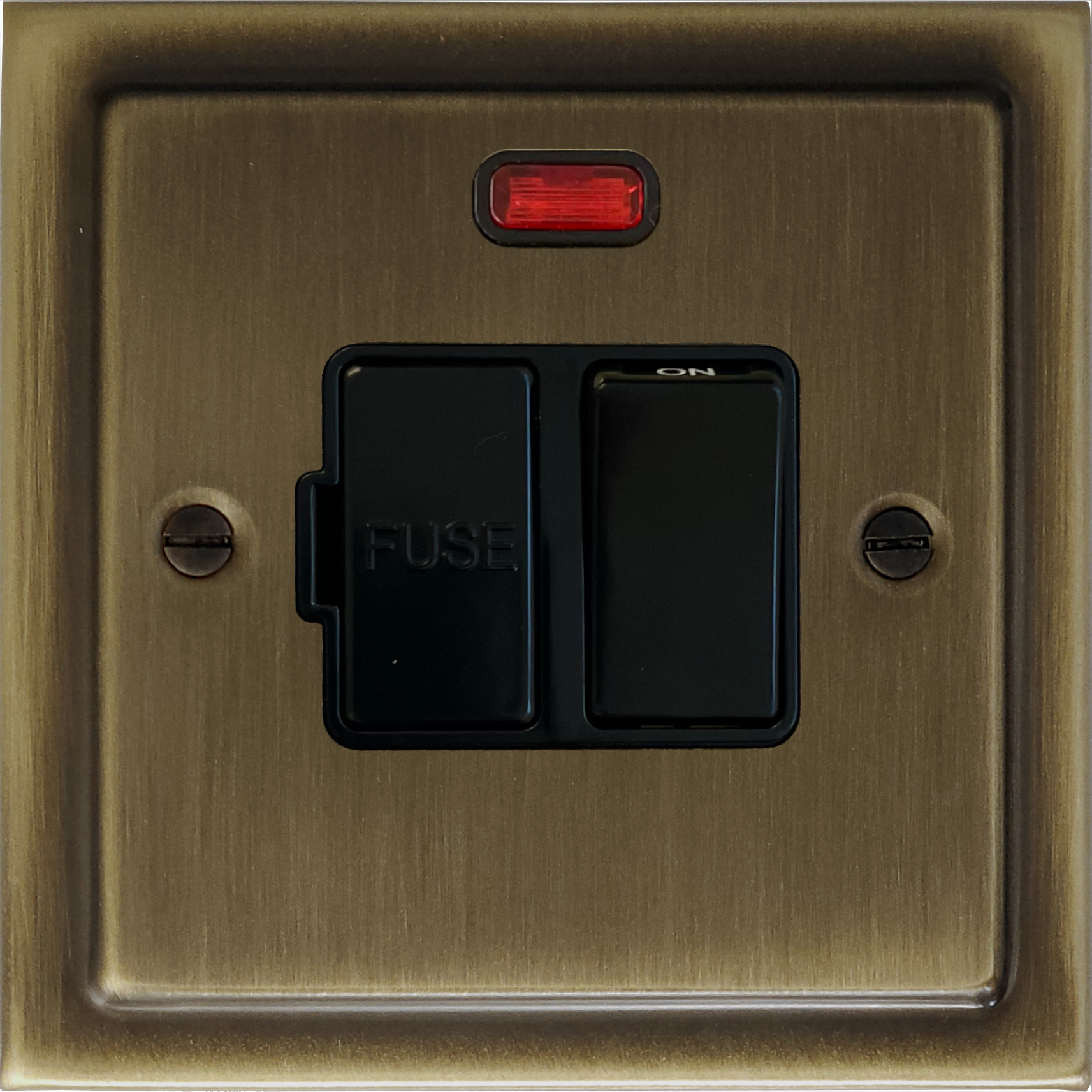 Antique Brass Switched Fused Spur with Neon (Black Switch) - G+H TAB27B