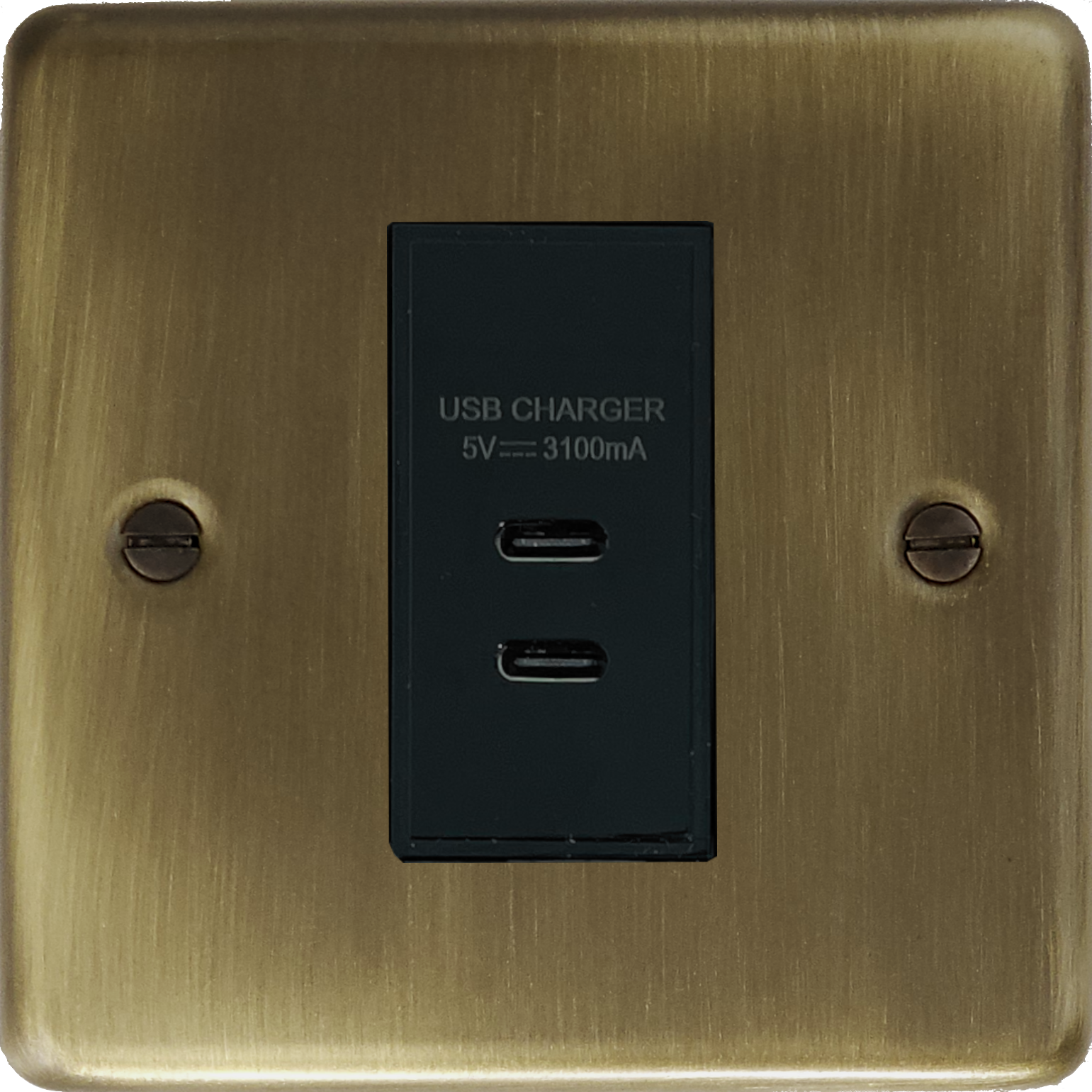 Antique Brass USB Charger (2x USB-C) (1 Gang) - G+H CAB42B