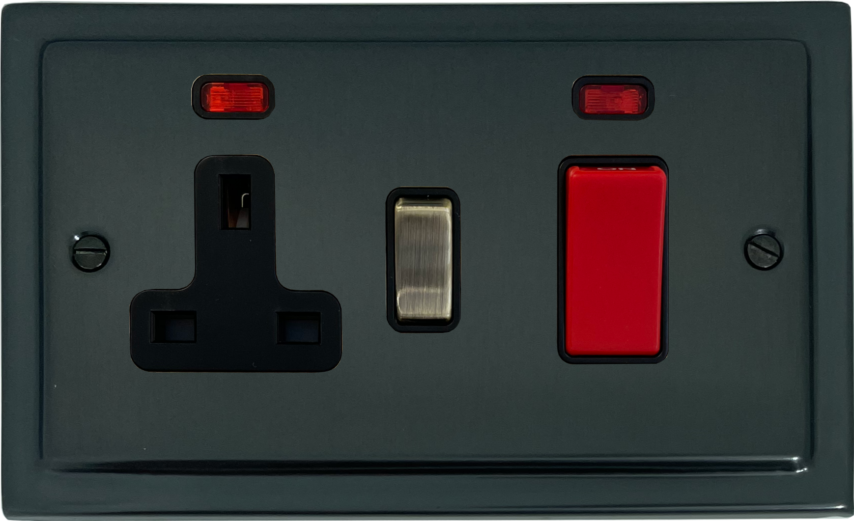 Black Bronze Cooker Switch with Socket (Antique Brass Switch/Black Surround) - G+H TBB329-AB