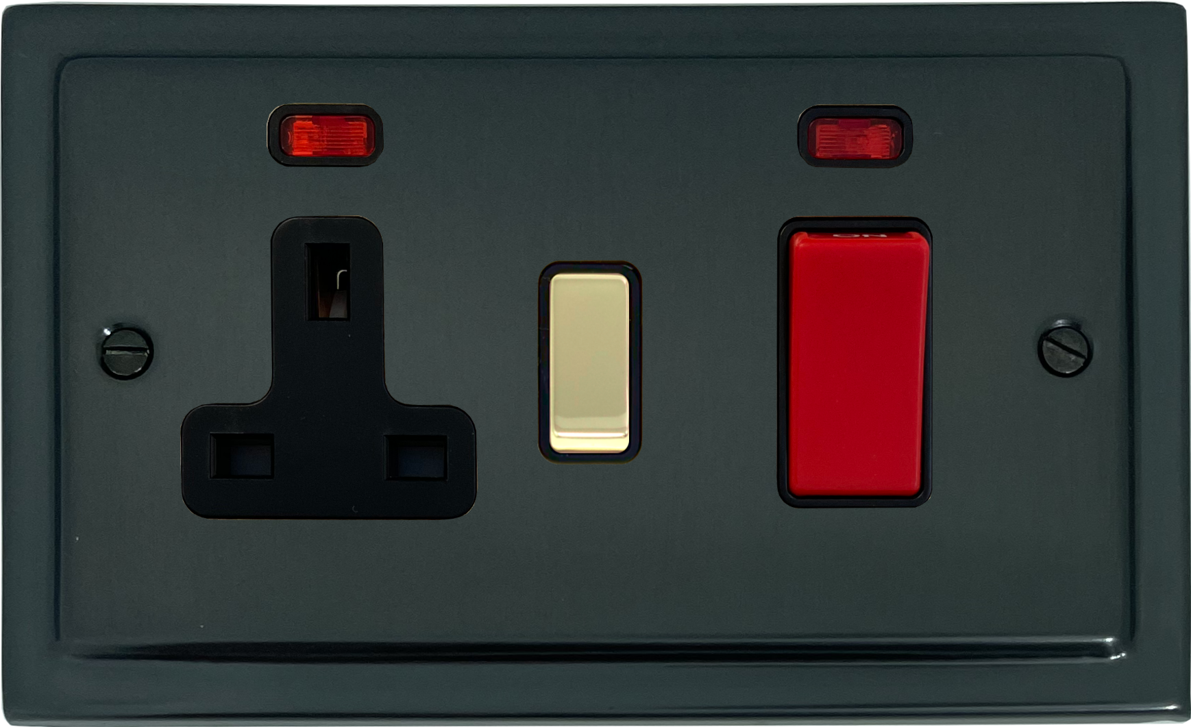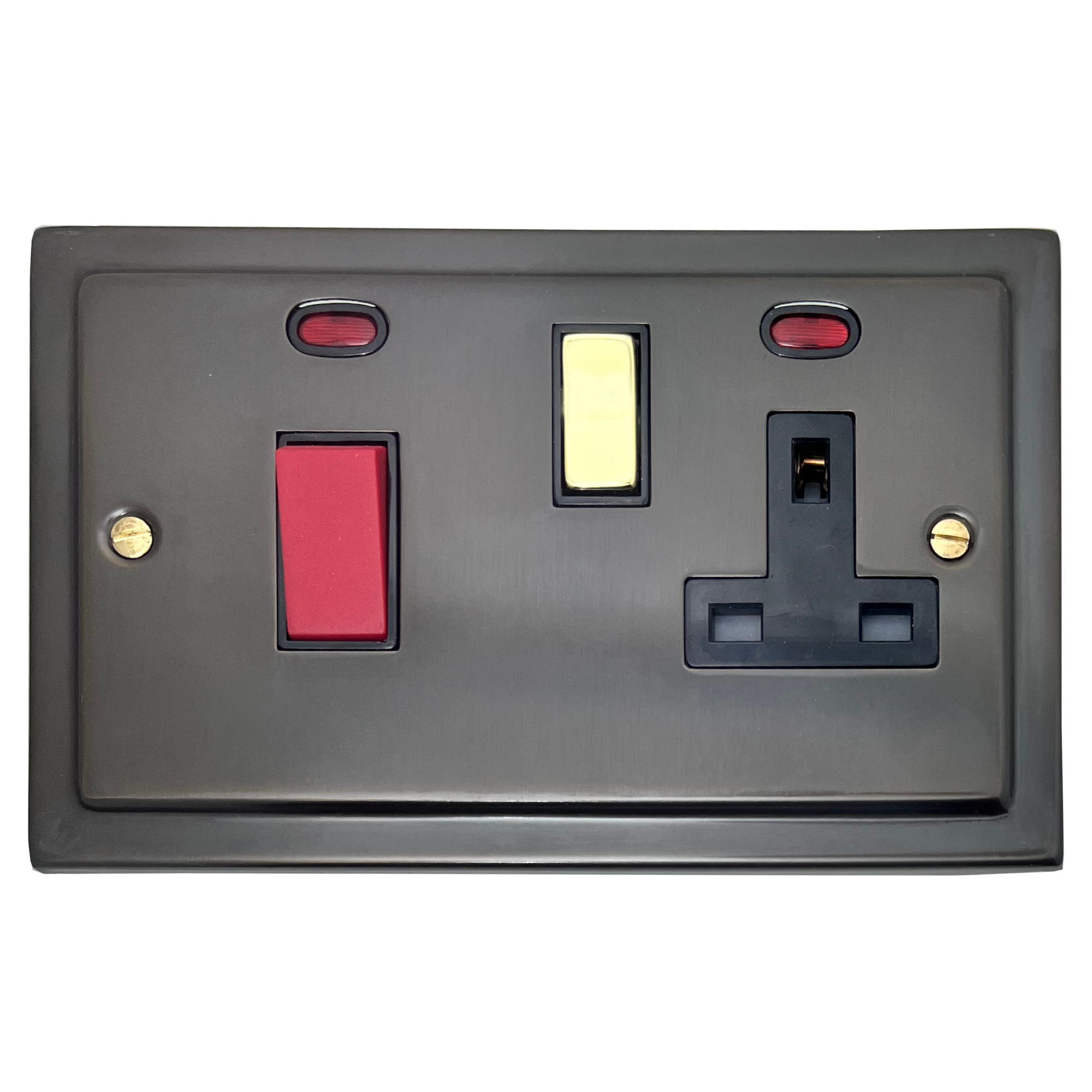 Black Bronze Cooker Switch with Socket (Polished Brass Switch/Black Surround) - G+H TBB329-PB