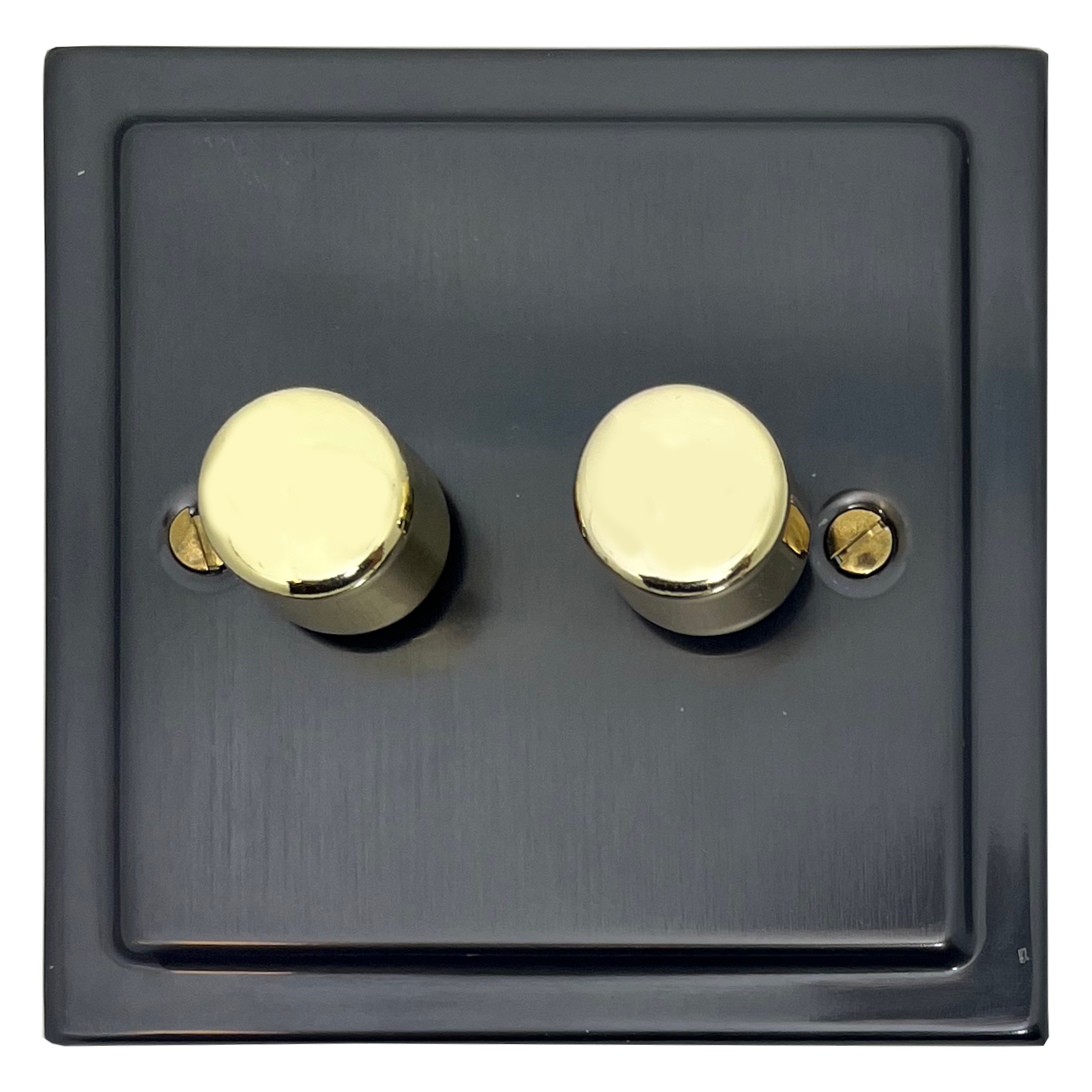 Black Bronze Dimmer (2 Gang/400W/Polished Brass Caps) - G+H TBB12-PB