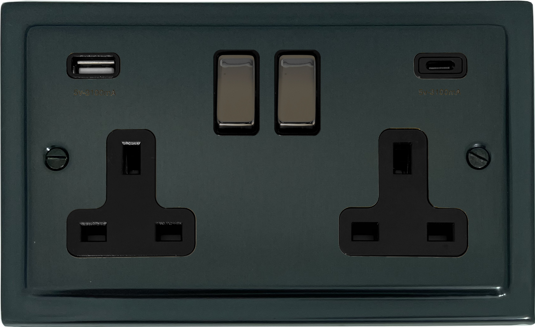 Black Bronze Double Socket with USB (Black Nickel Switches/USB-A and USB-C) - G+H TBB3911