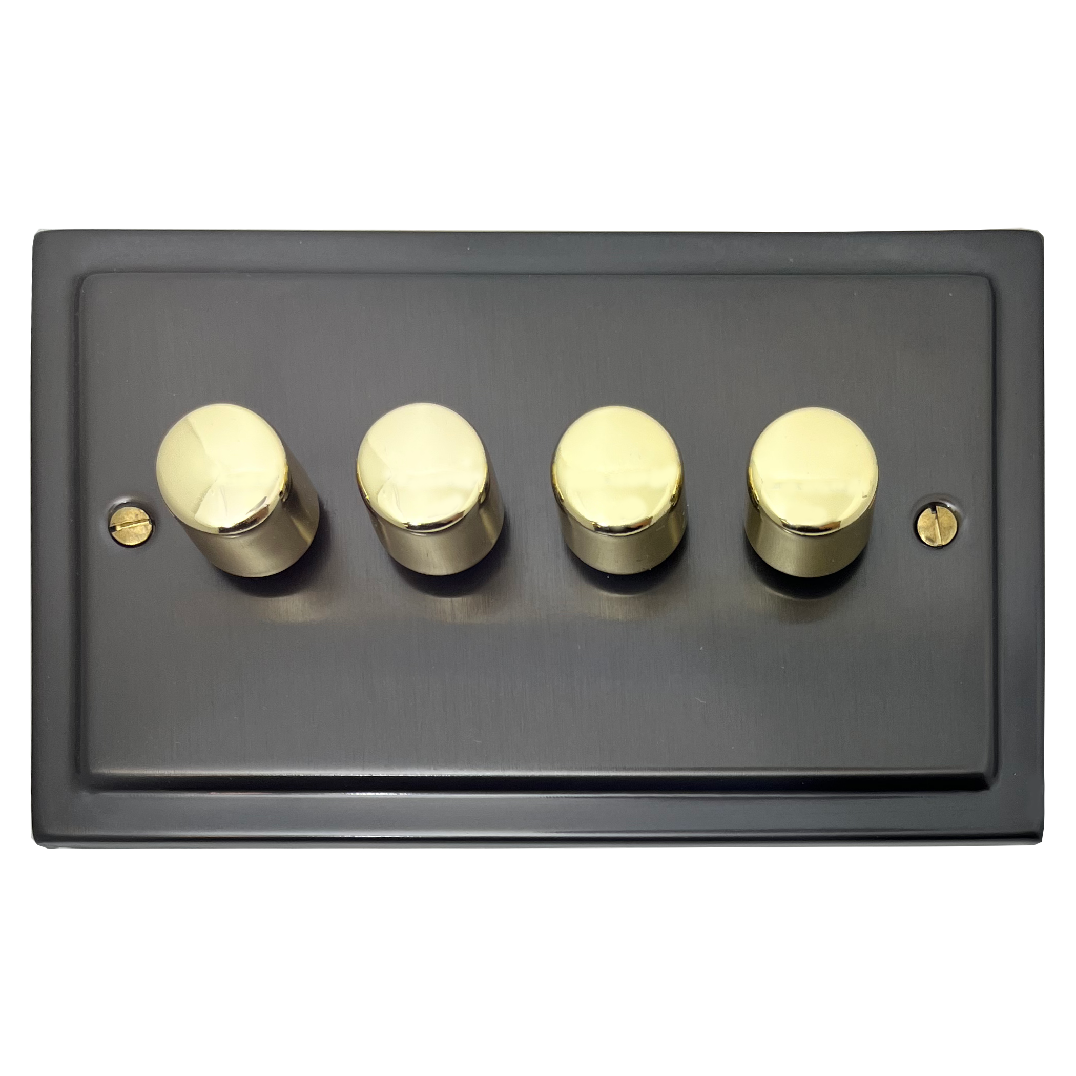 Black Bronze LED Dimmer (4 Gang/Polished Brass Caps) - G+H TBB524-PB