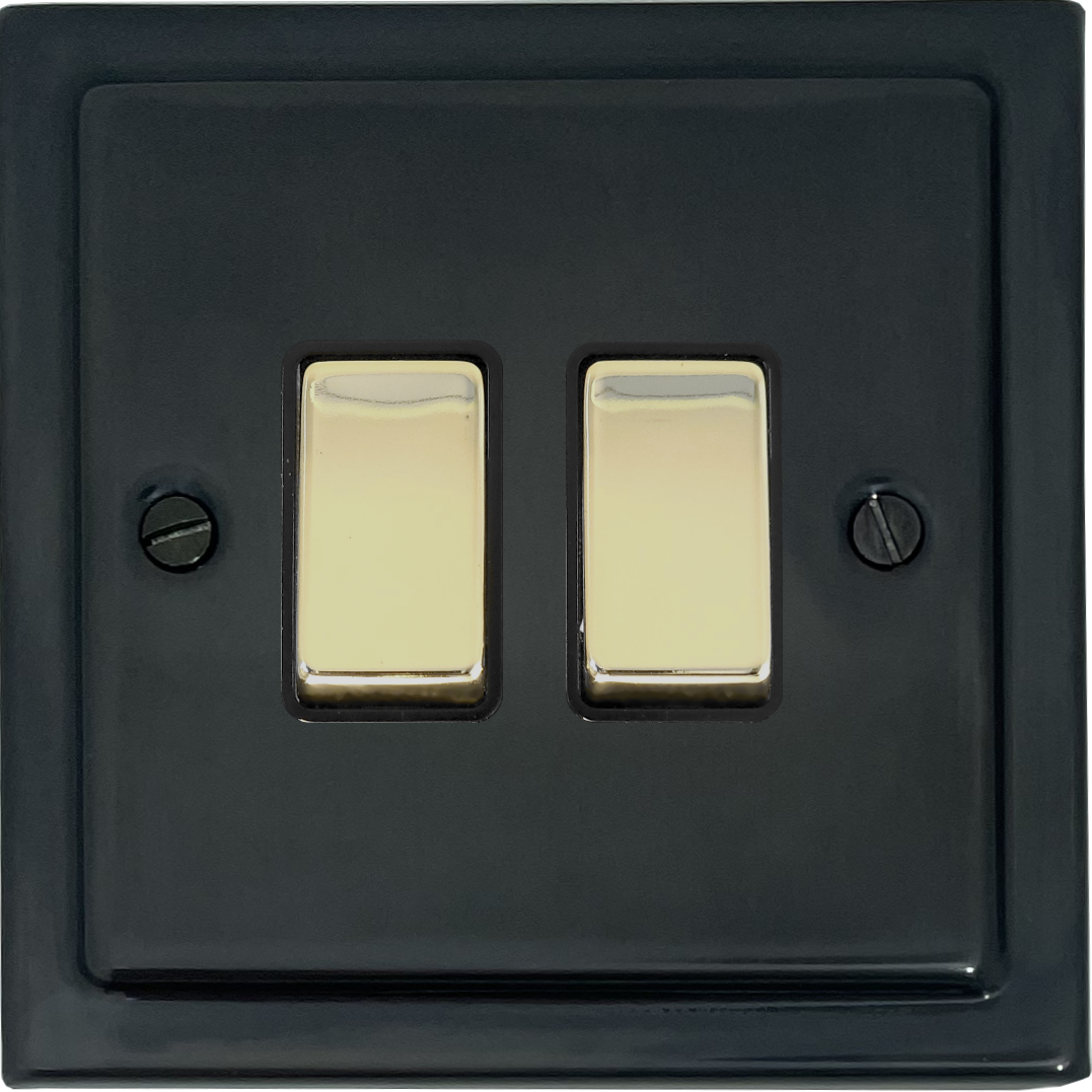 Black Bronze Light Switch (2 Gang/Polished Brass Switch/Black Insert) - G+H TBB302-PB