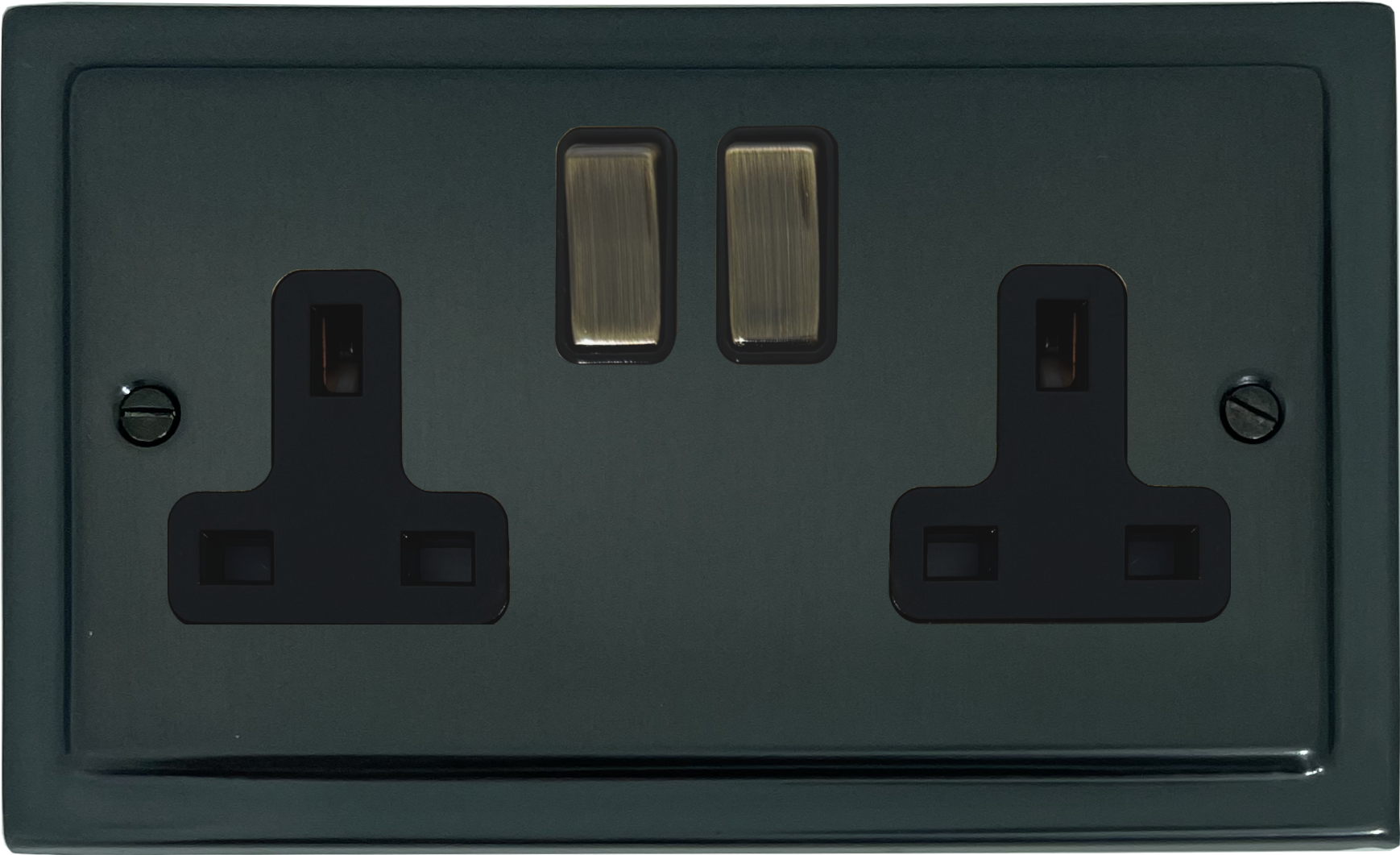 Black Bronze Socket (Double Socket/Antique Brass Switches/Black Insert) - G+H _CARTON2