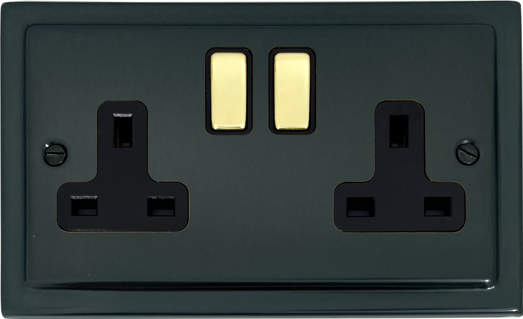 Black Bronze Socket (Double Socket/Polished Brass Switches/Black Insert) - G+H TBB310-PB
