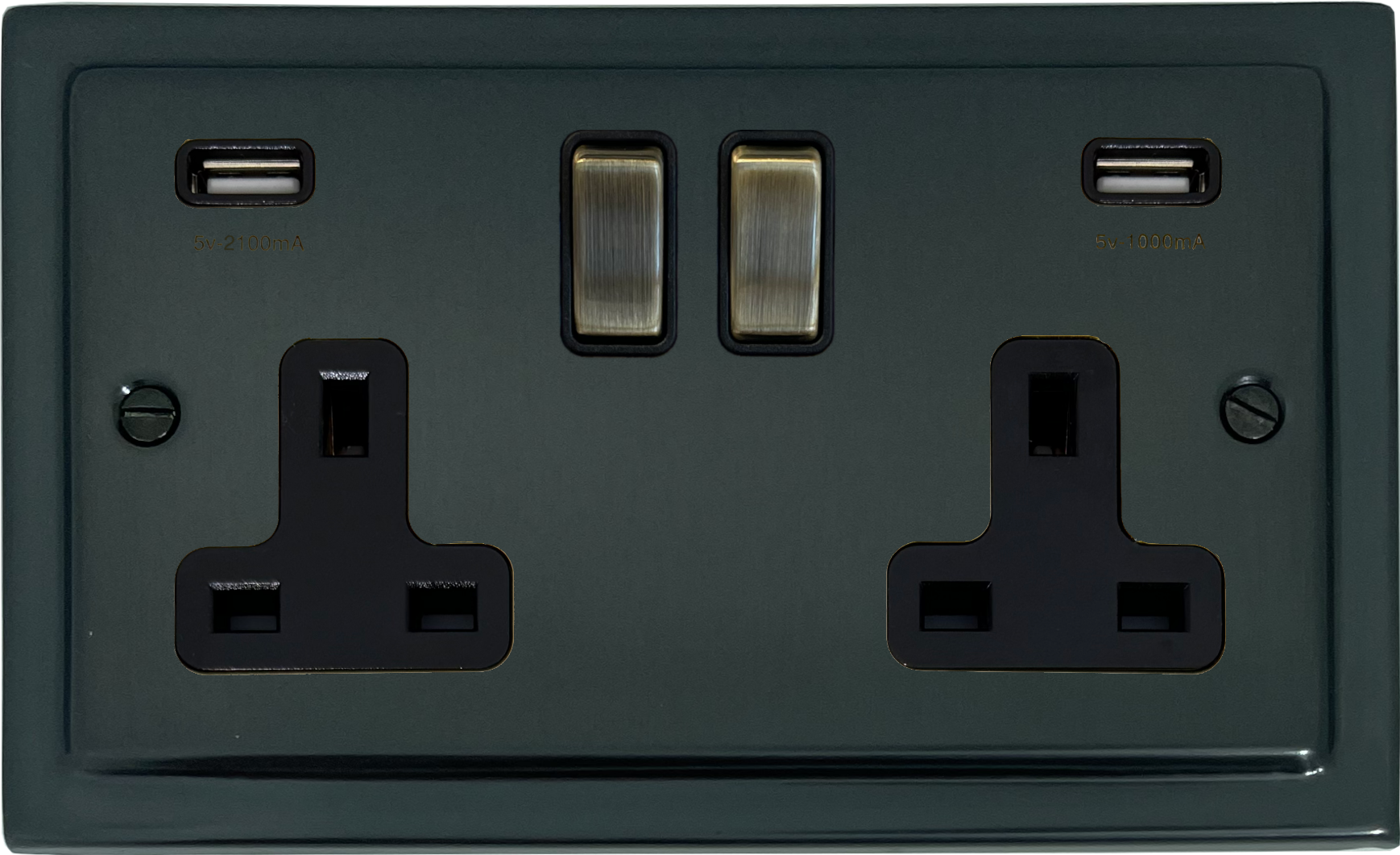 Black Bronze Socket & USB (2G Socket/Antique Brass Switches/Black Insert) - G+H TBB3910-AB