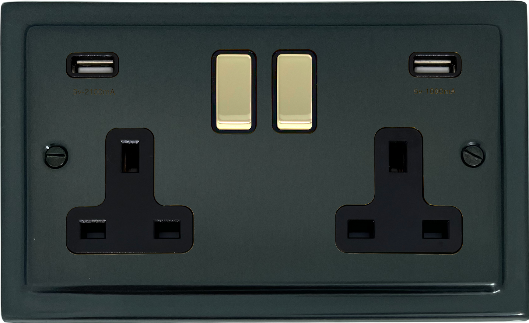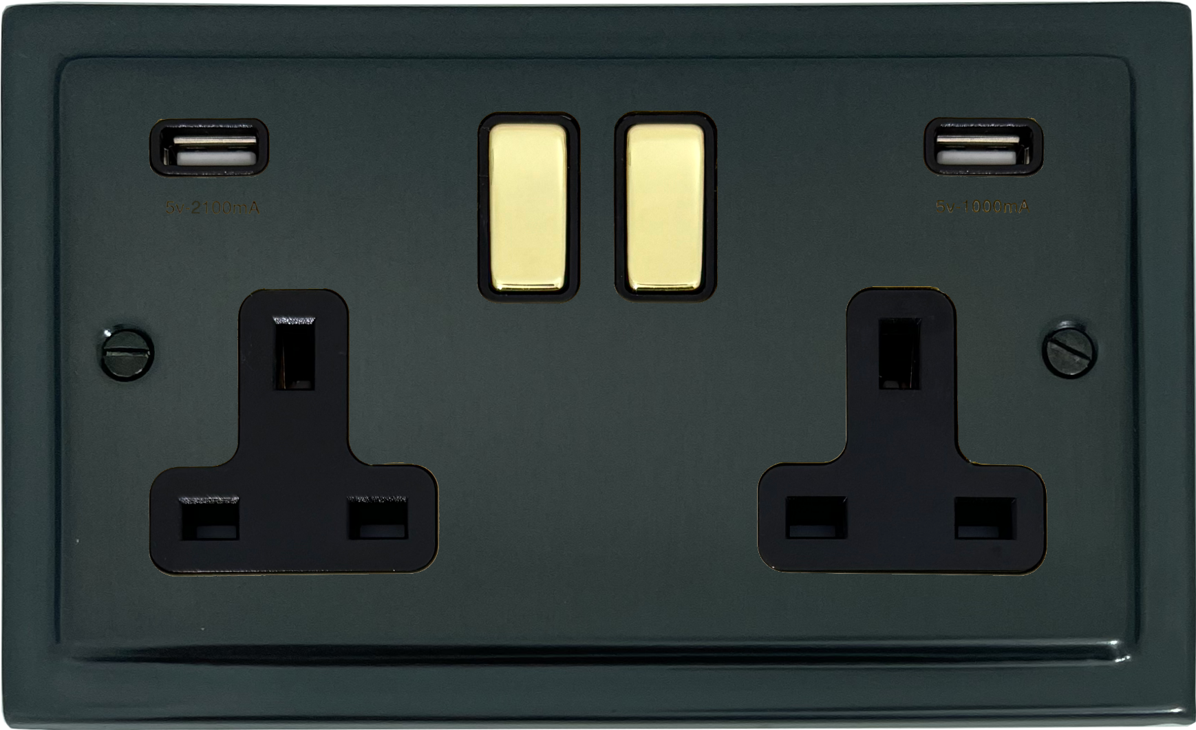 Black Bronze Socket & USB (2G Socket/Polished Brass Switches/Black Insert) - G+H TBB3910-PB