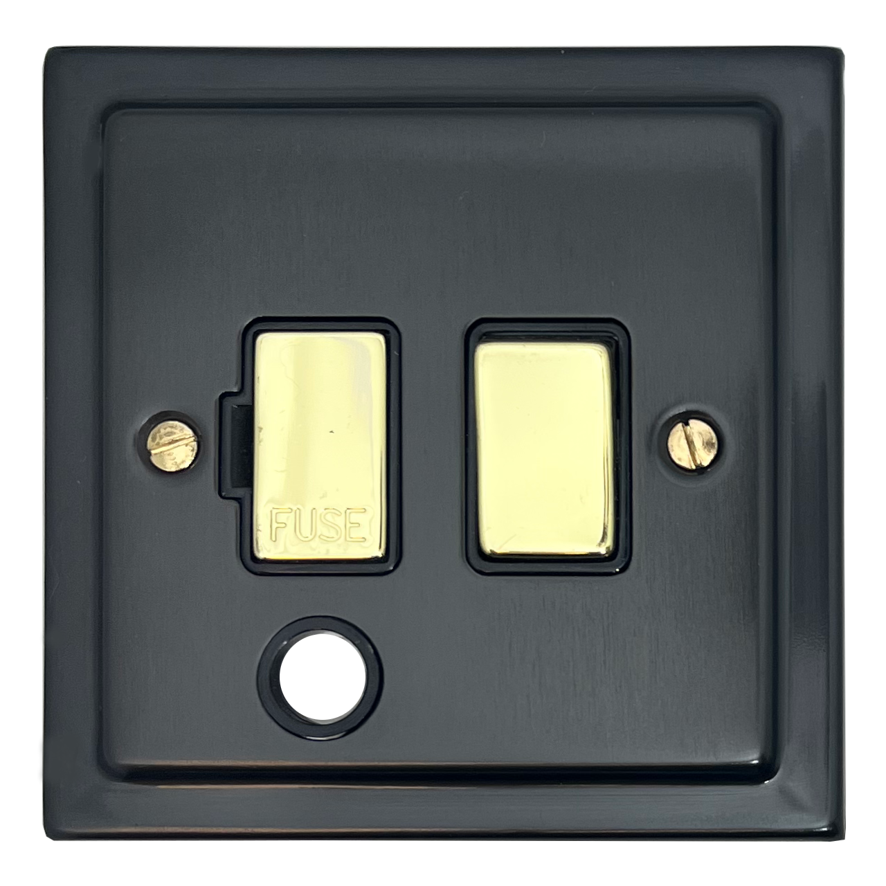 Black Bronze Switched Fused Spur (Flex Outlet/Polished Brass Switch/Black Insert) - G+H TBB356-PB