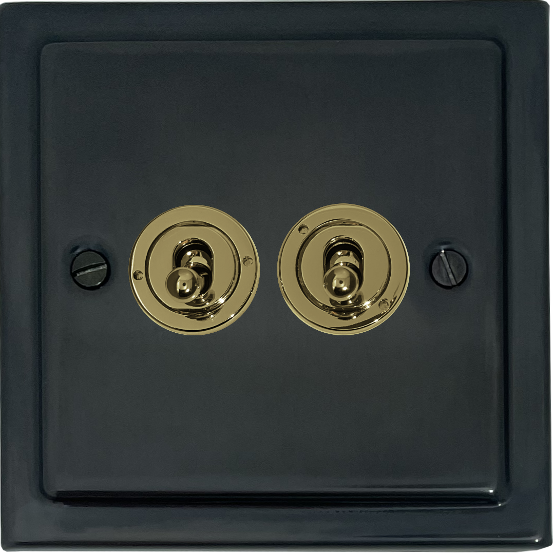 Black Bronze Toggle Switch (2 Gang/Polished Brass Switches) - G+H TBB382-PB