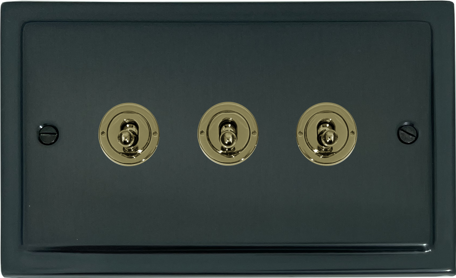 Black Bronze Toggle Switch (3 Gang/Polished Brass Switches) - G+H TBB383-PB