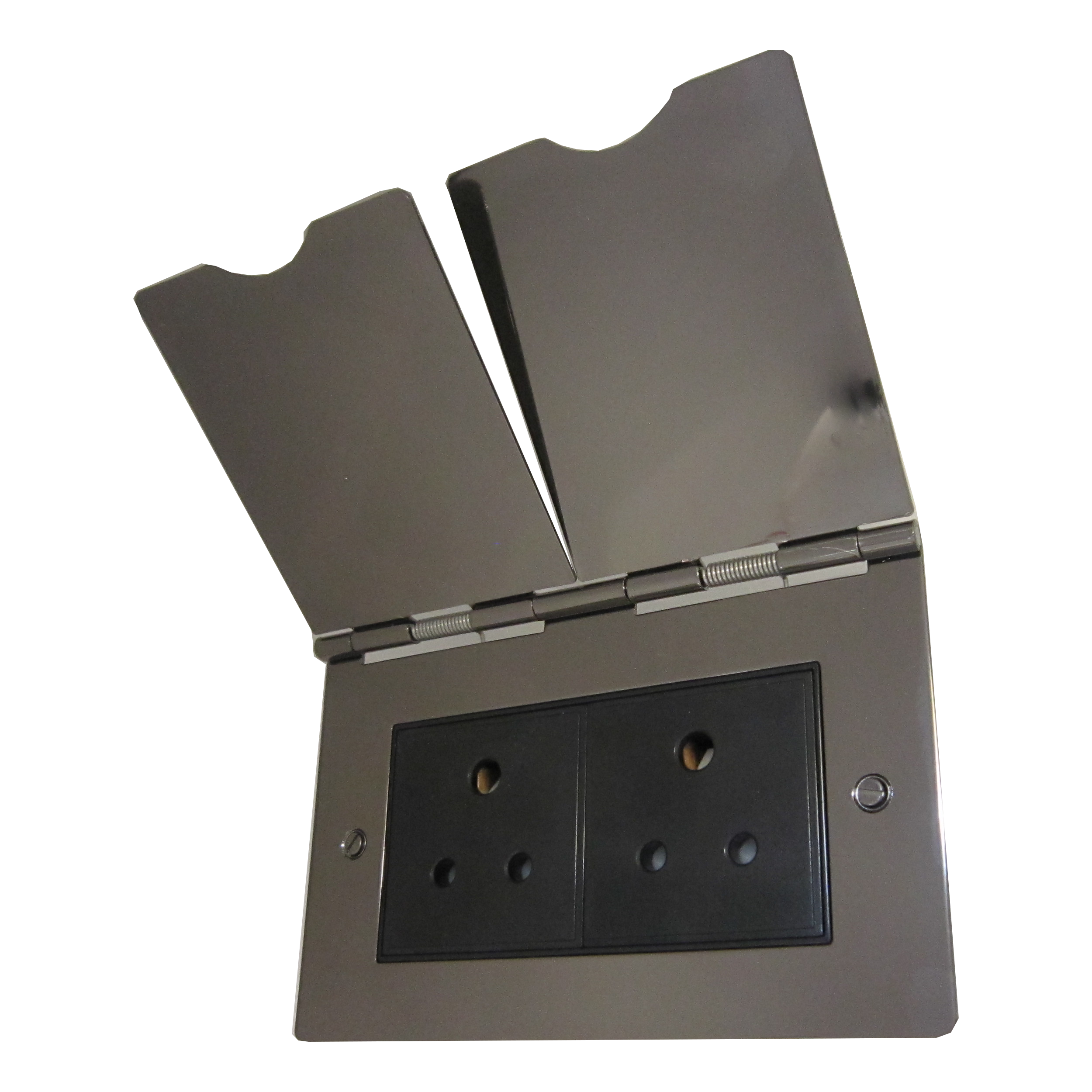 Black Nickel 5A 3 Pin Floor Socket (2 Gang)