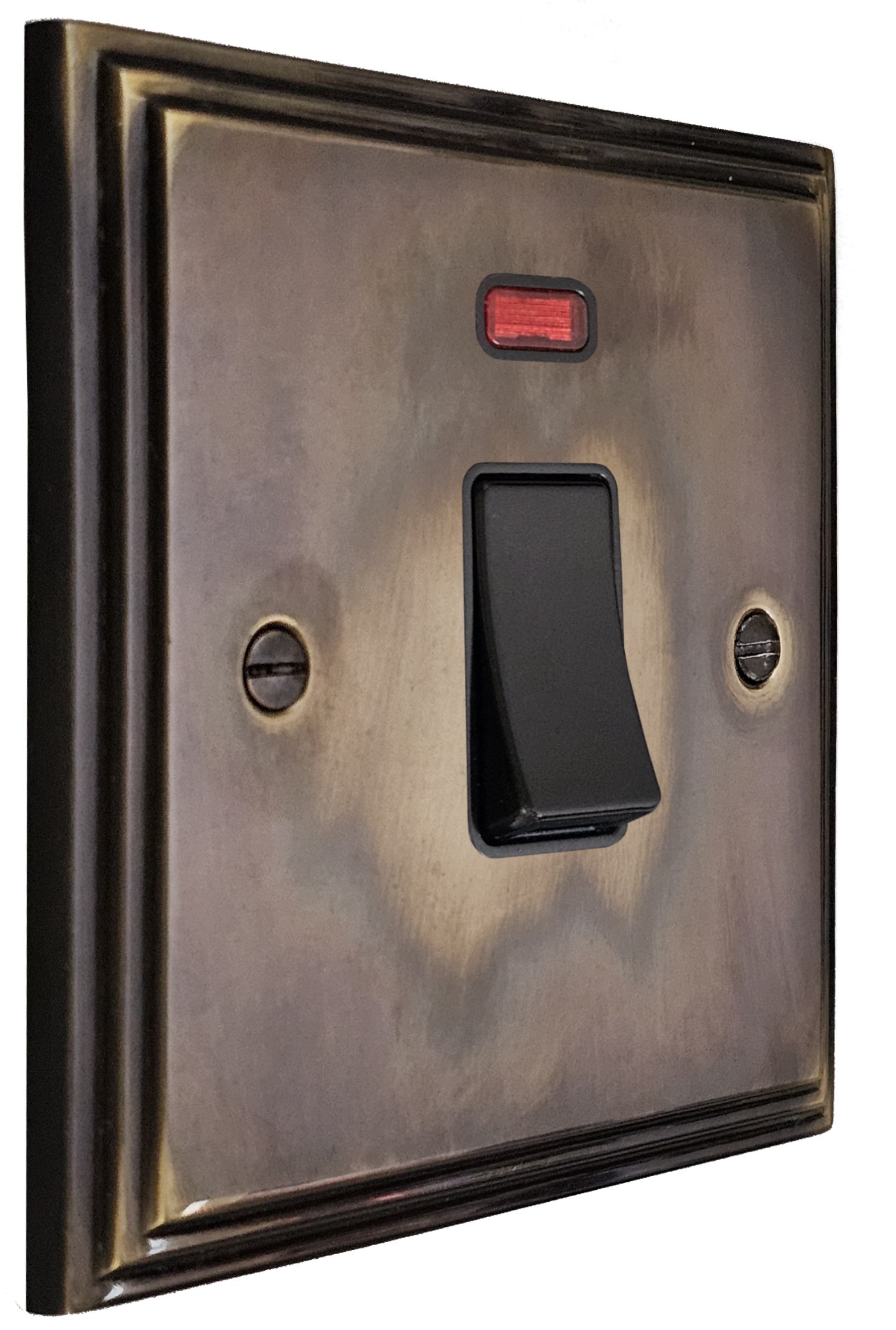 Cast Aged Brass 20A DP Switch with Neon (Black Switch) - G+H VAN26B