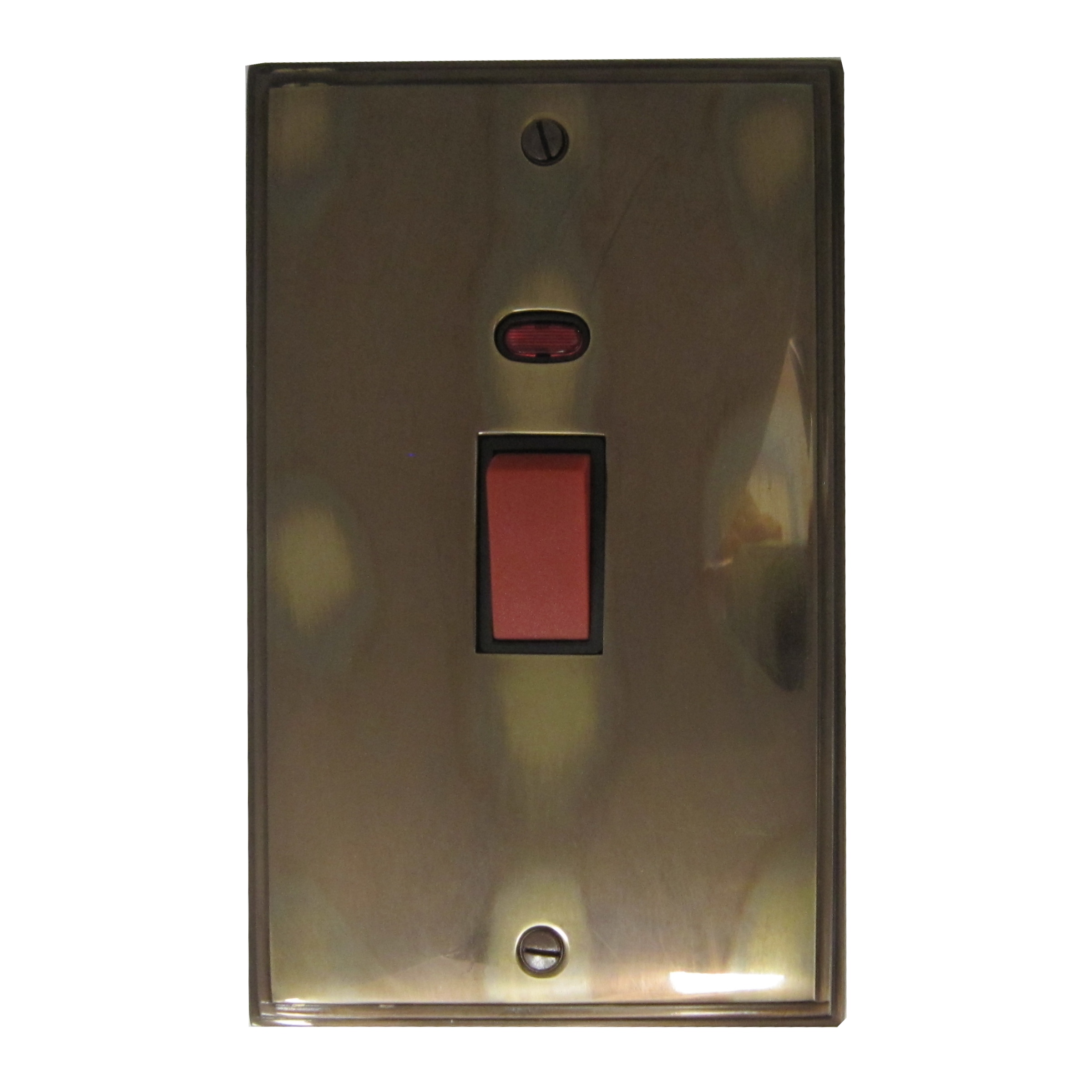 Cast Aged Brass 45A DP Switch with Neon (Vertical Plate)
