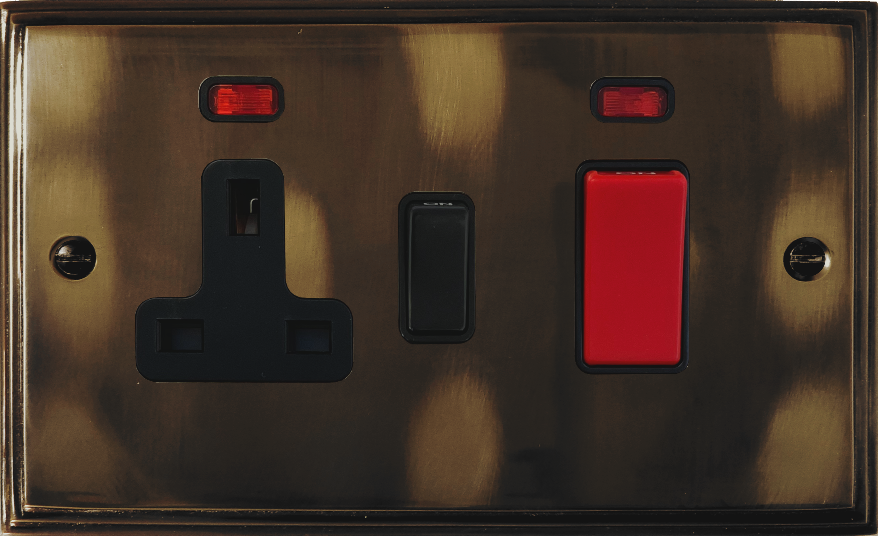Cast Aged Brass Cooker Switch with Socket (Black Switch) - G+H VAN29B
