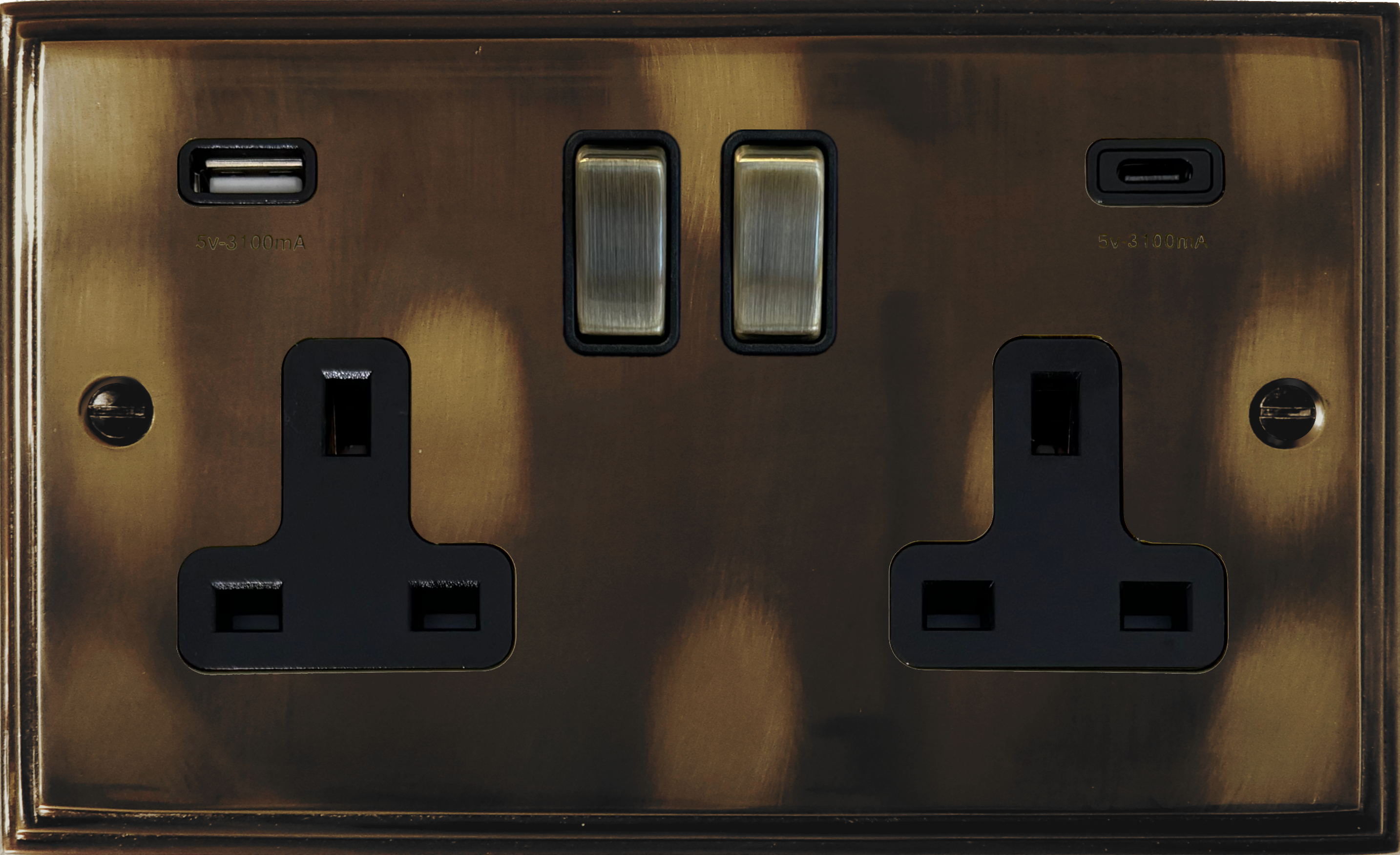Cast Aged Brass Double Socket (2 Gang/USB-A and USB-C) - G+H VAN3911