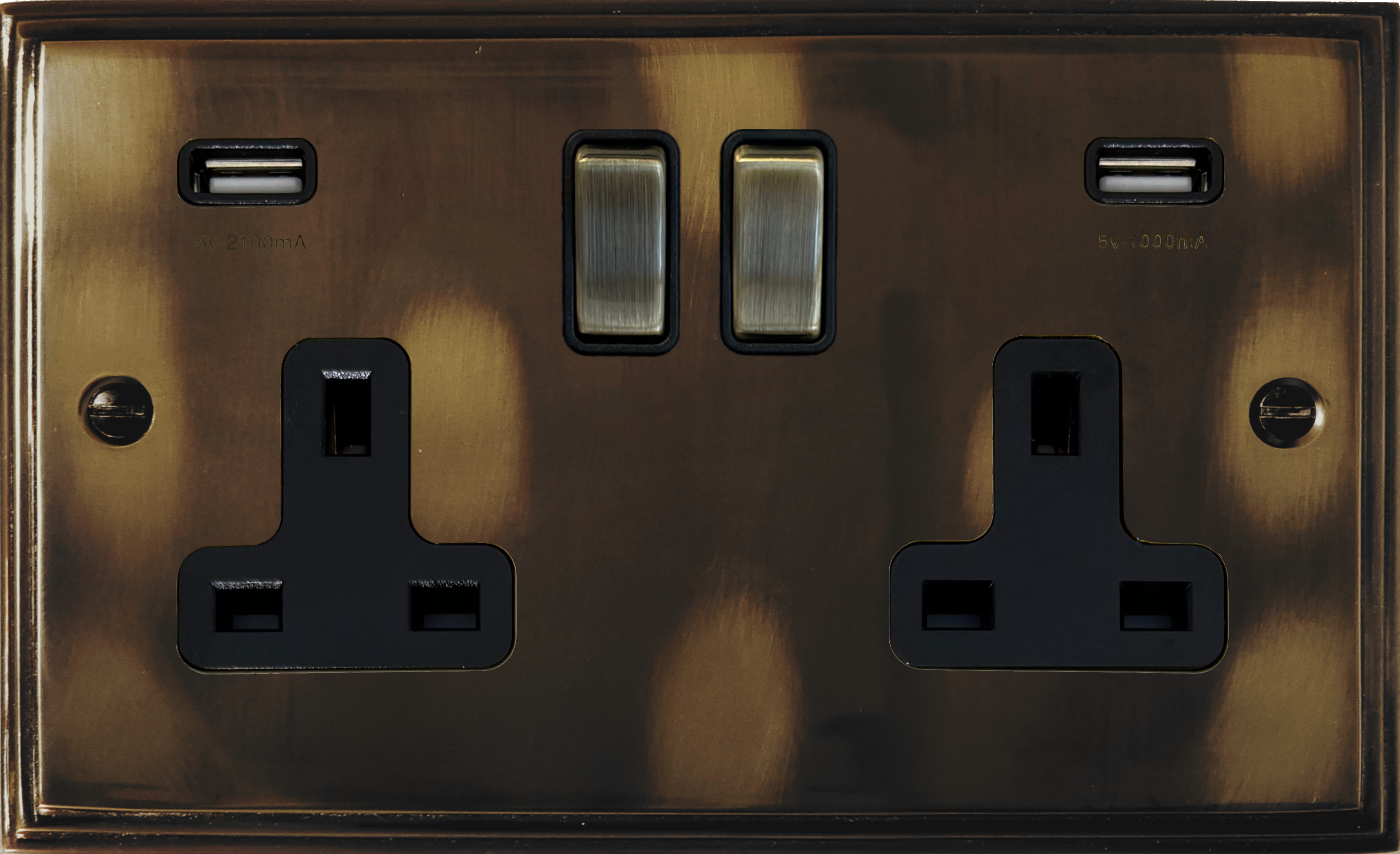 Cast Aged Brass Double Socket with USB - G+H VAN3910
