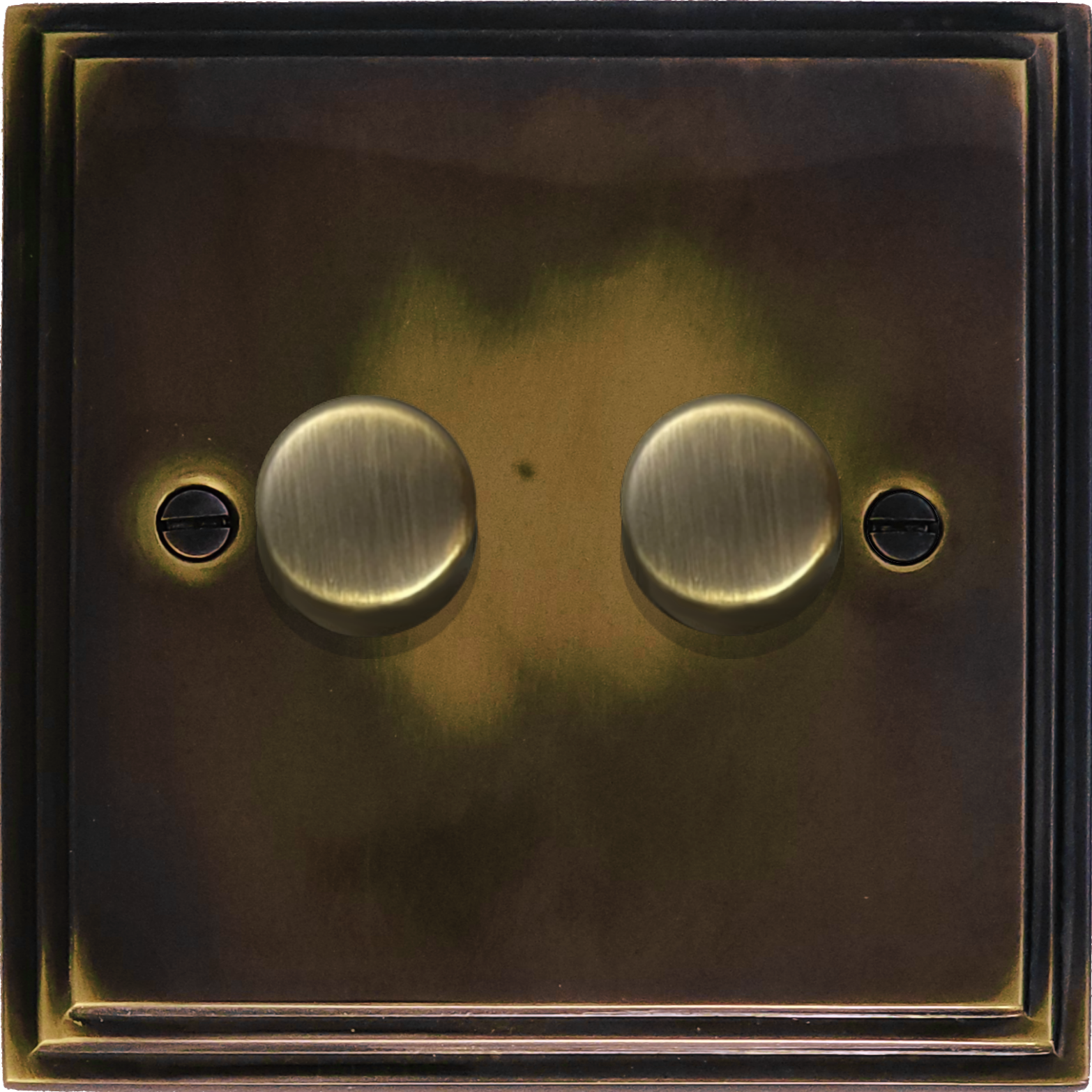 Cast Aged Brass LED Dimmer (2 Gang) - G+H VAN522