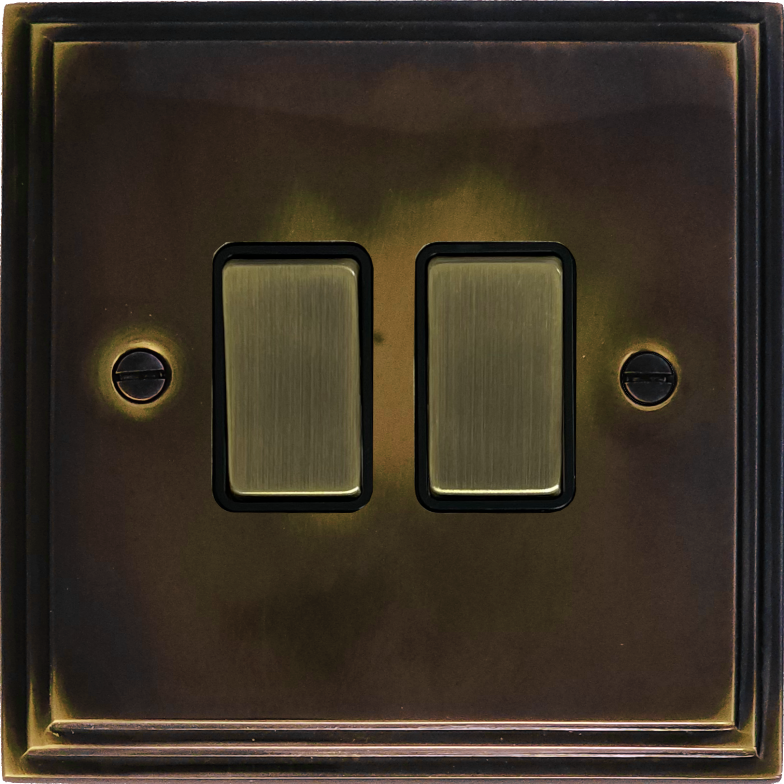 Cast Aged Brass Light Switch (2 Gang) - G+H VAN302