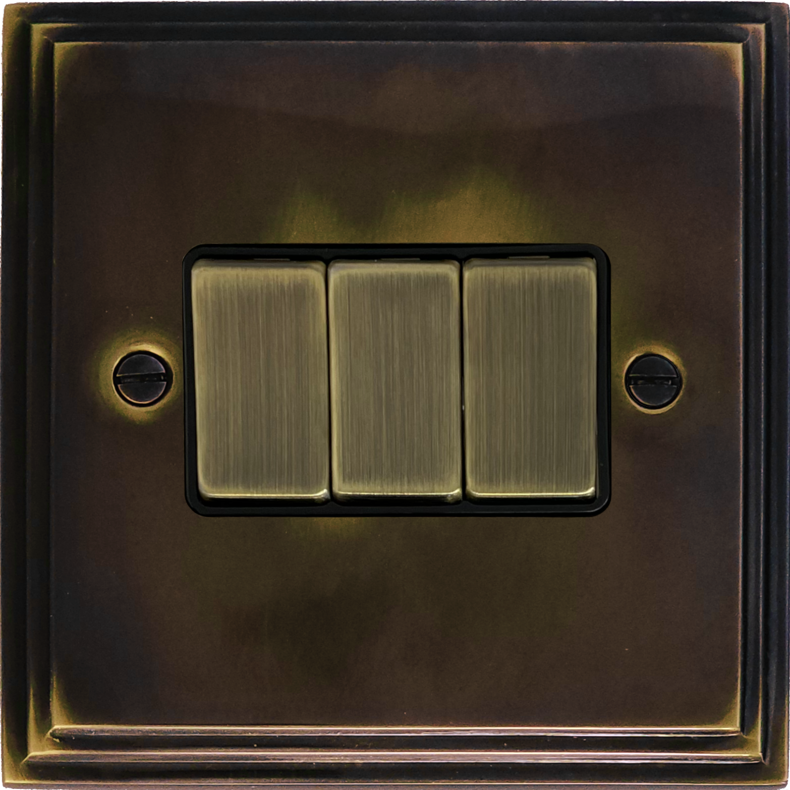 Cast Aged Brass Light Switch (3 Gang) - G+H VAN303