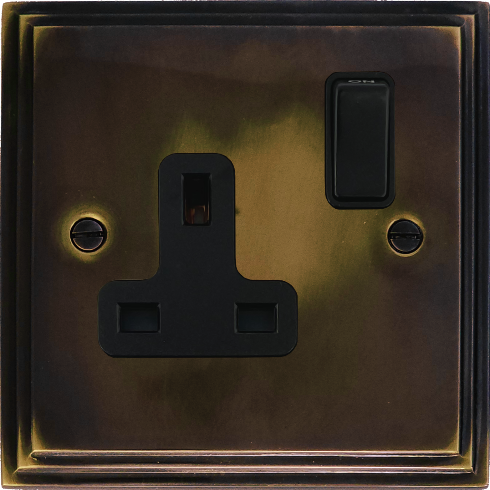 Cast Aged Brass Single Socket (Black Switch) - G+H VAN9B