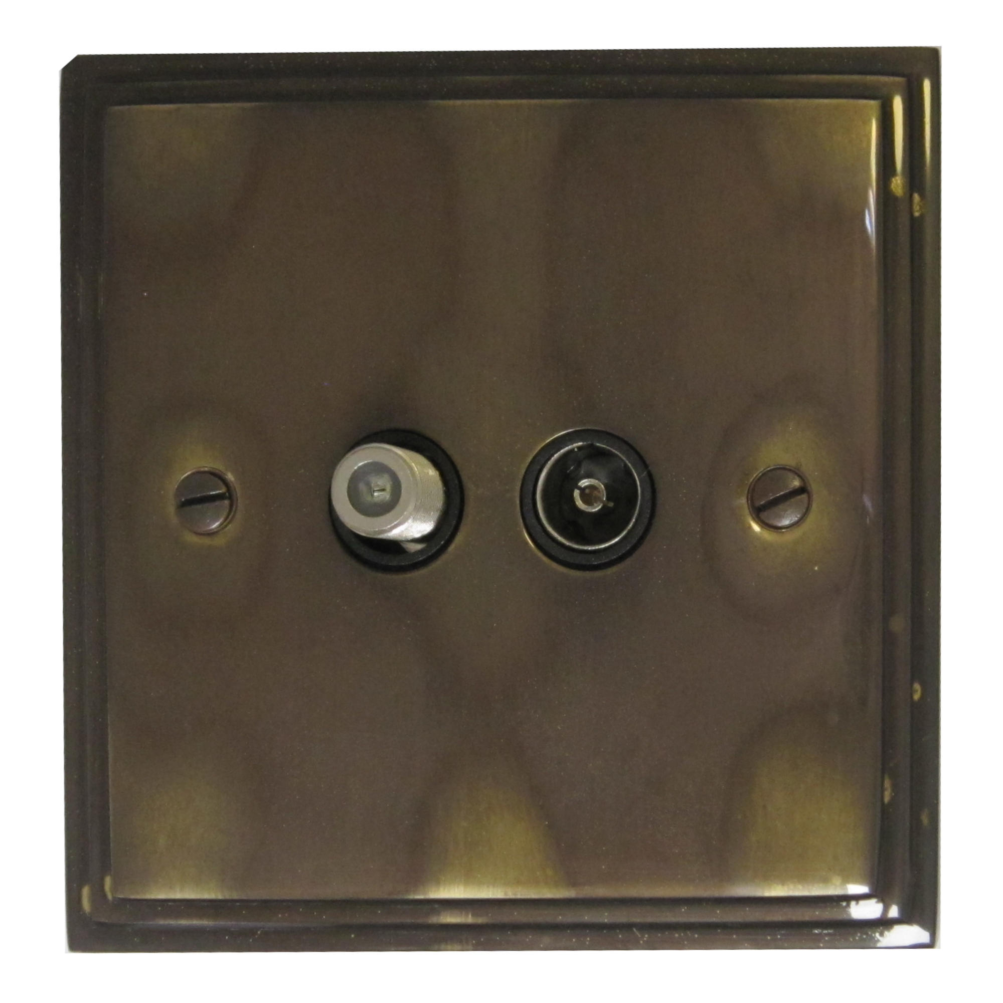 Cast Aged Brass TV/Satellite Socket - G+H VAN38B
