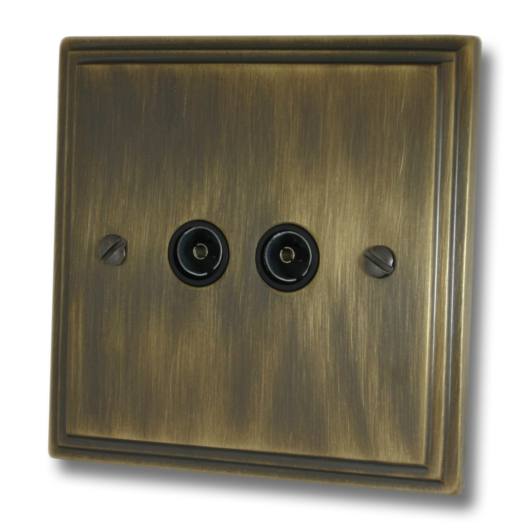 Cast Antique Brass TV Socket (2 Gang) - G+H VAB36B