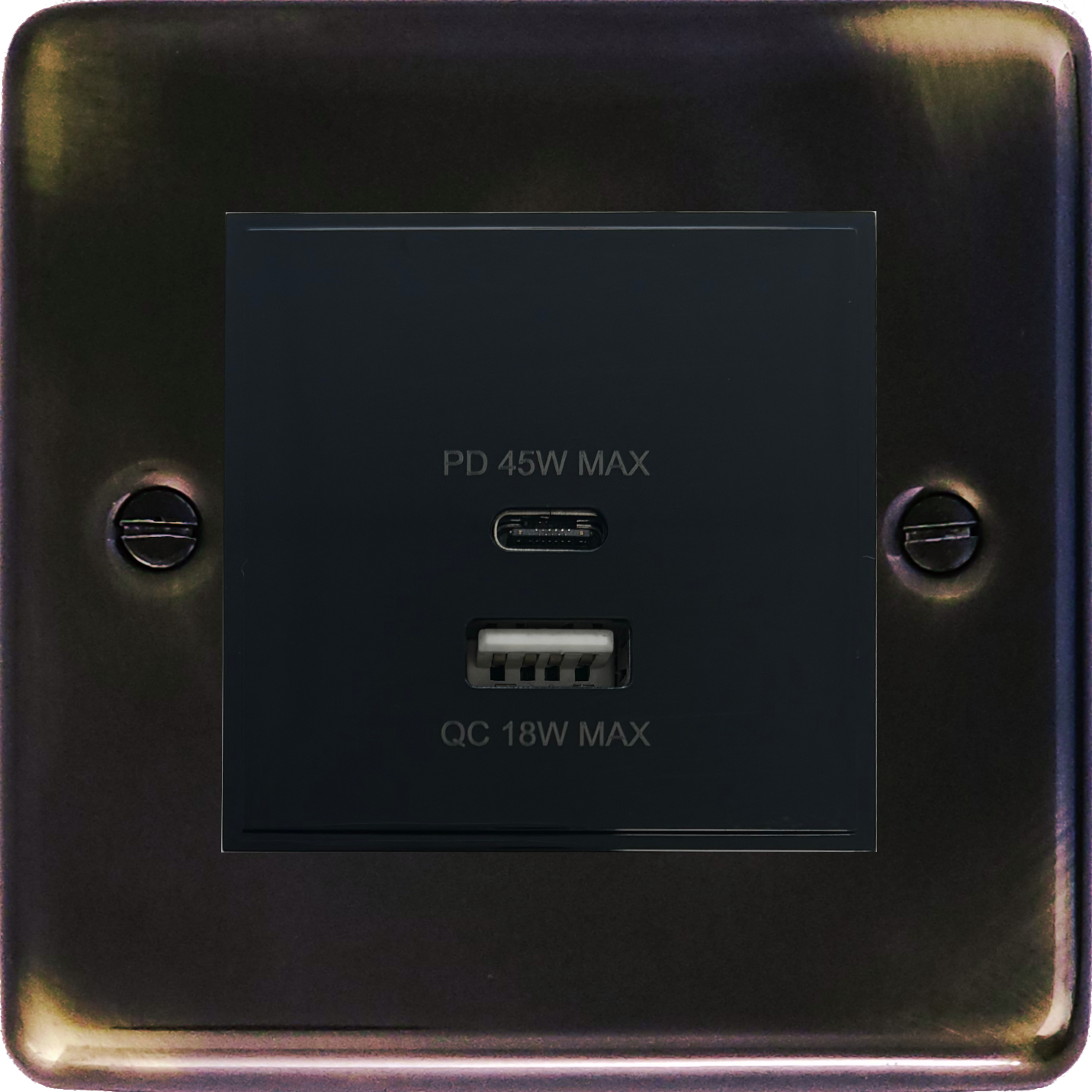 Contour Aged Brass USB Charger (Dual USB A + C Quick Charge) (1 Gang) - G+H CAN43B