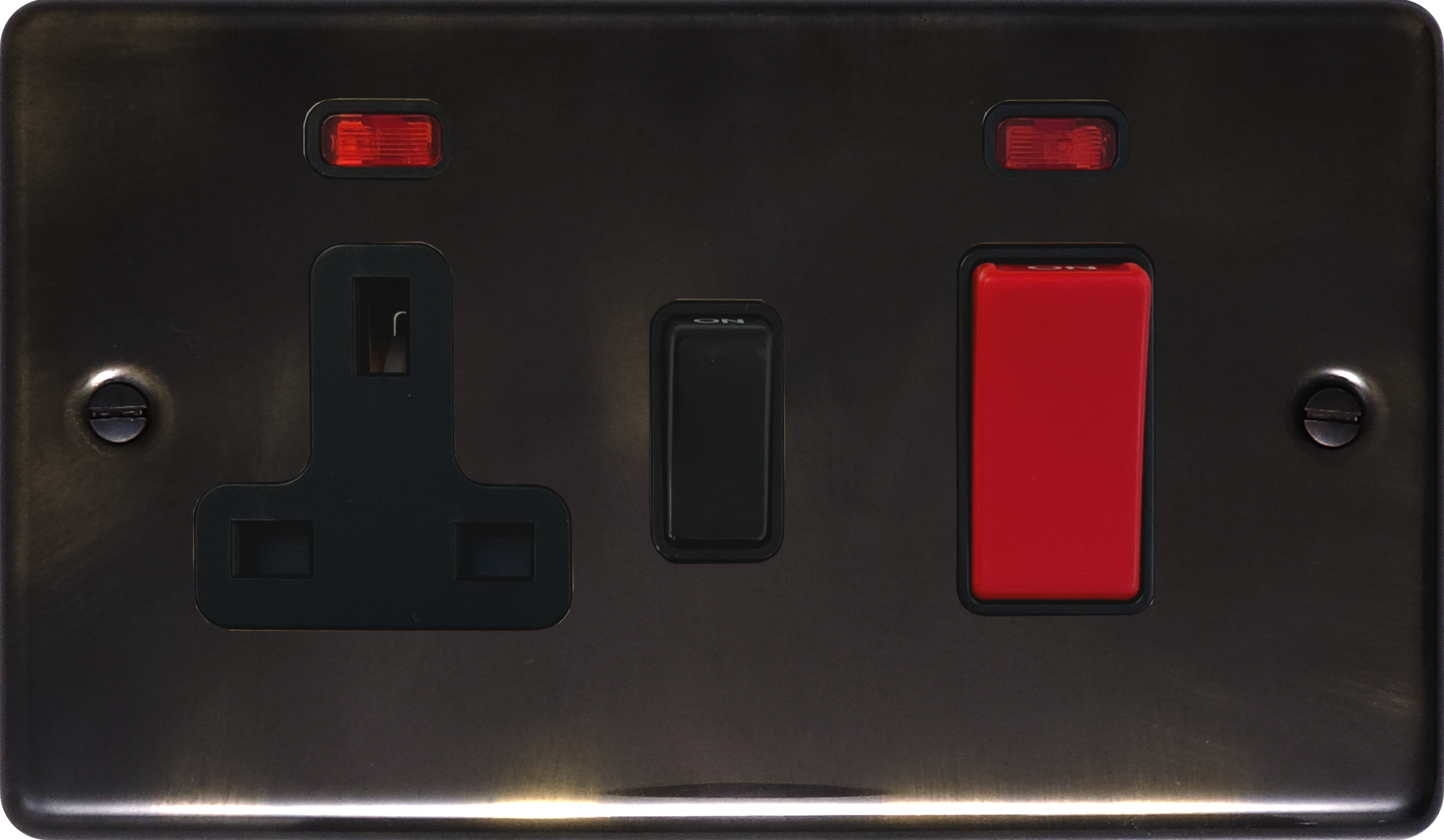 Contour Aged Cooker Switch with Socket (Black Switch) - G+H CAN29B