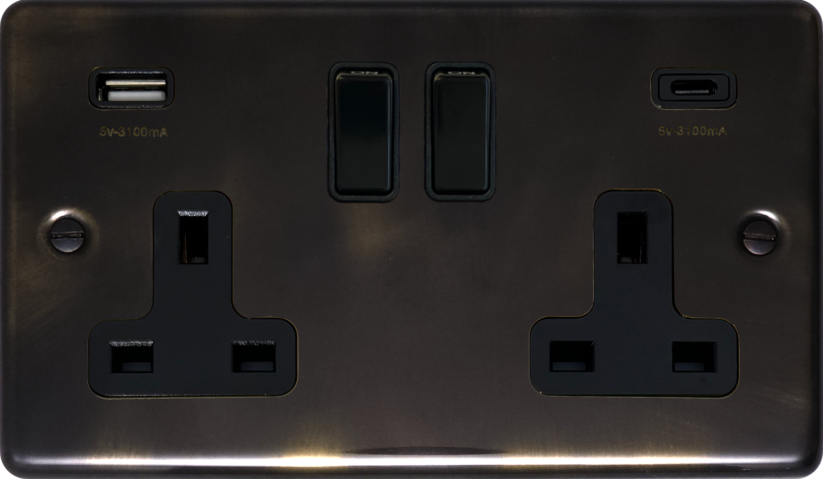 Contour Aged Double Socket (USB-A and USB-C Black Switches) - G+H CAN911B