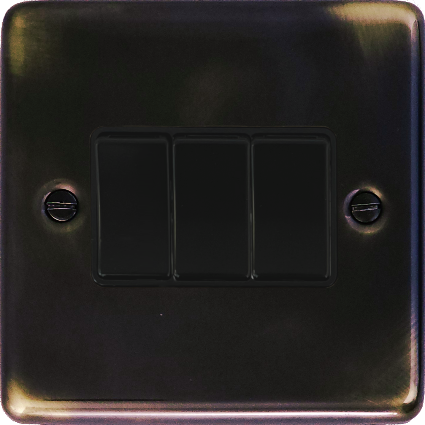 Contour Aged Switch (3 Gang/Black Switches) - G+H CAN3B