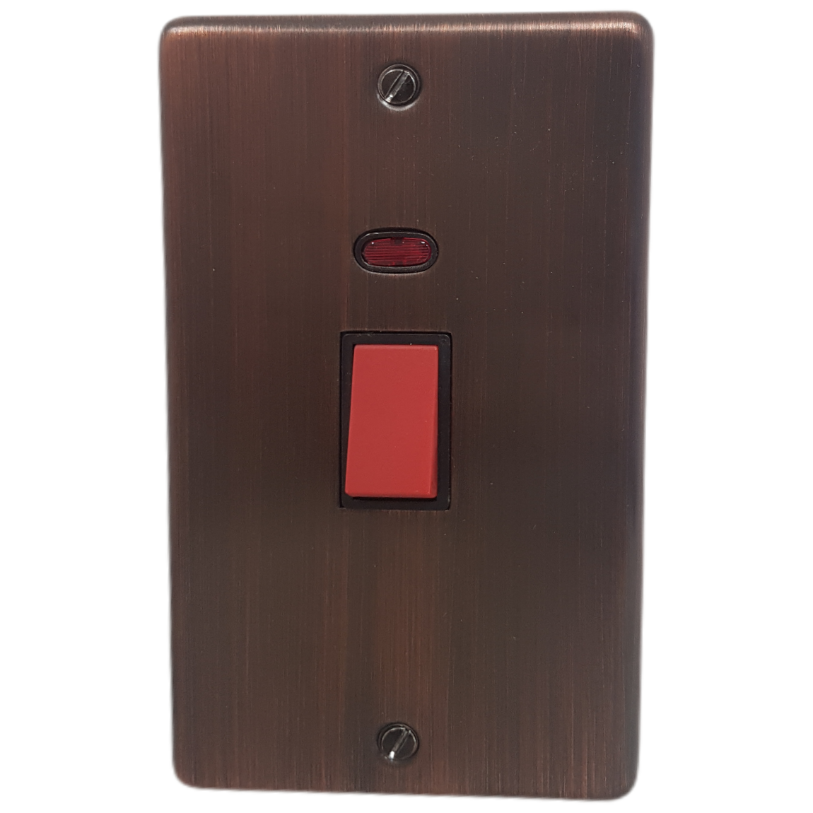 Contour Antique Copper 45A DP Switch with Neon (Black Insert/Red Switch/Vertical Plate)