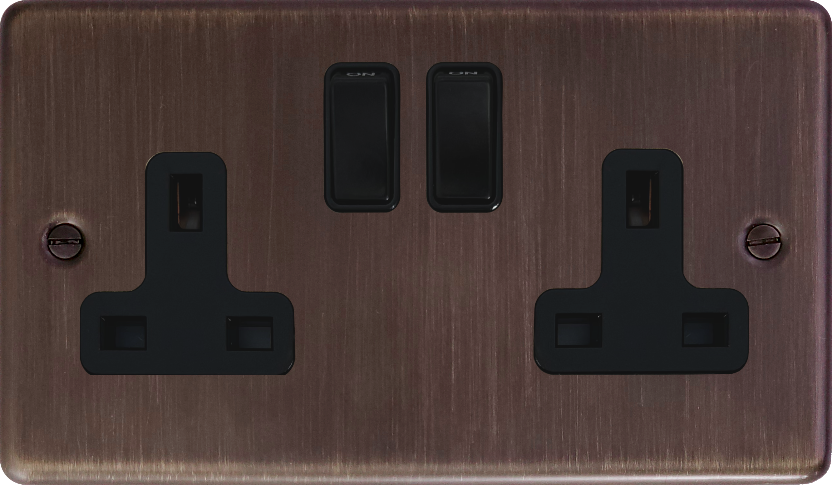 Contour Antique Copper Double Socket (Black Switch) - G+H CAC10B