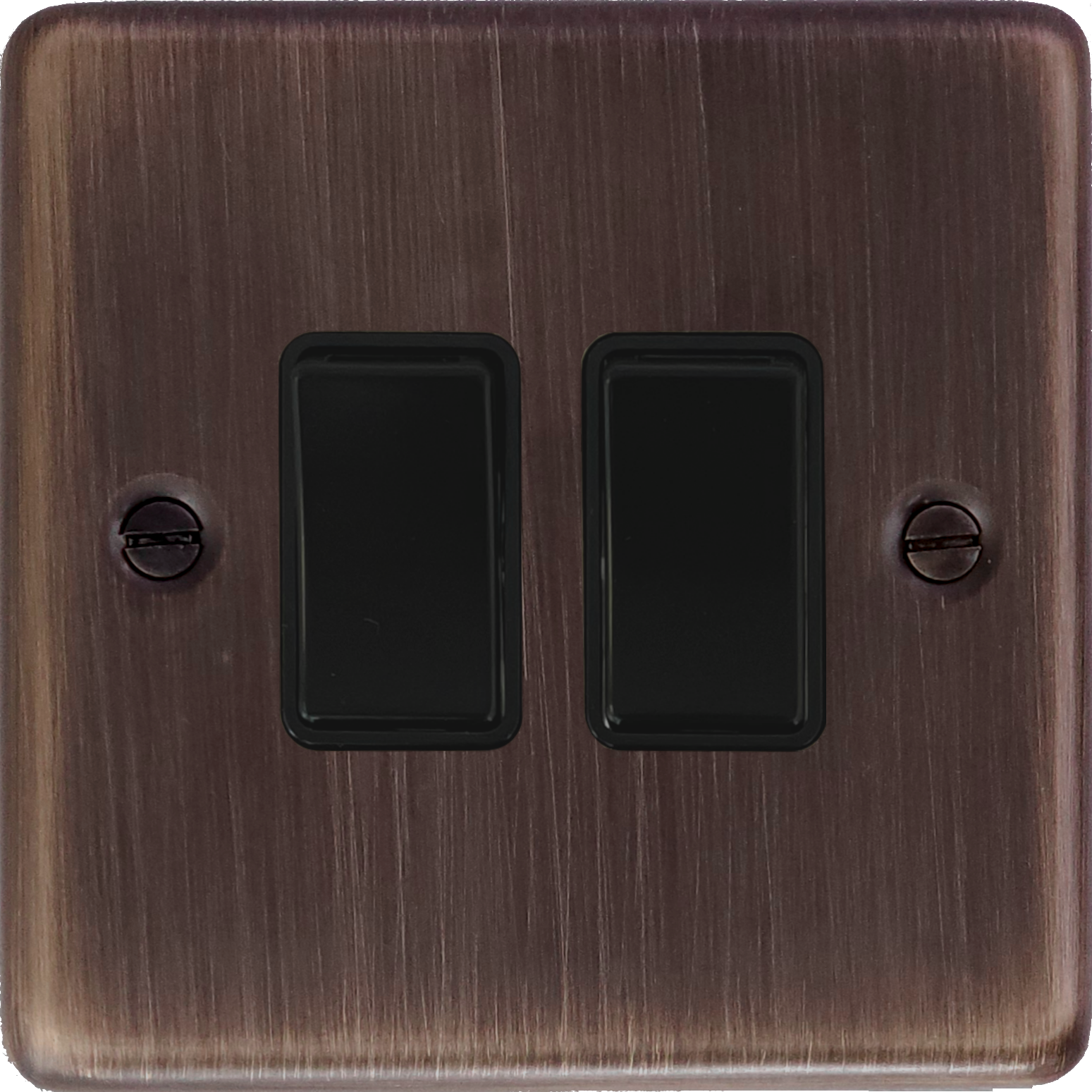 Contour Antique Copper Light Switch (2 Gang/Black Switch) - G+H CAC2B