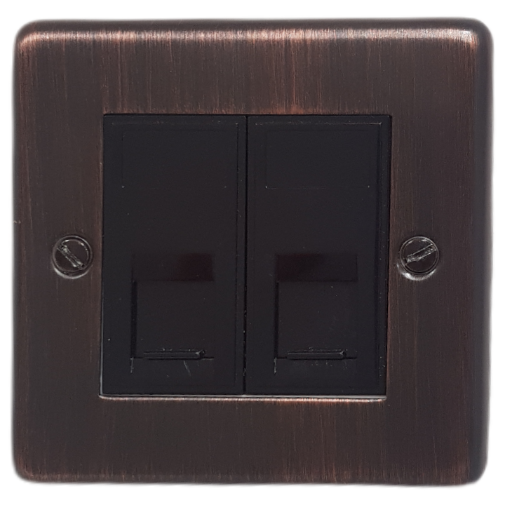Contour Antique Copper RJ45 Socket (2 Gang/Black Insert) - G+H CAC62B