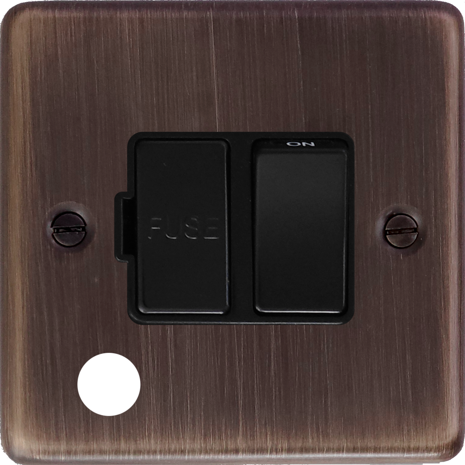 Contour Antique Copper Switched Fused Spur with Flex Outlet (Black Switch) - G+H CAC56B