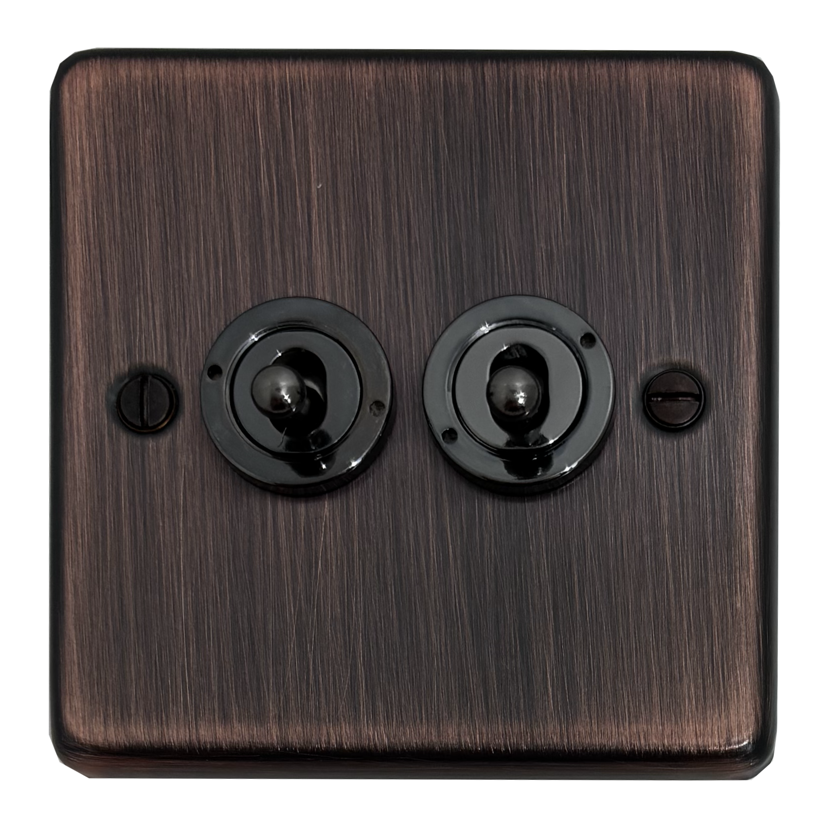 Contour Antique Copper Toggle Switch (2 Gang) - G+H CAC382FB