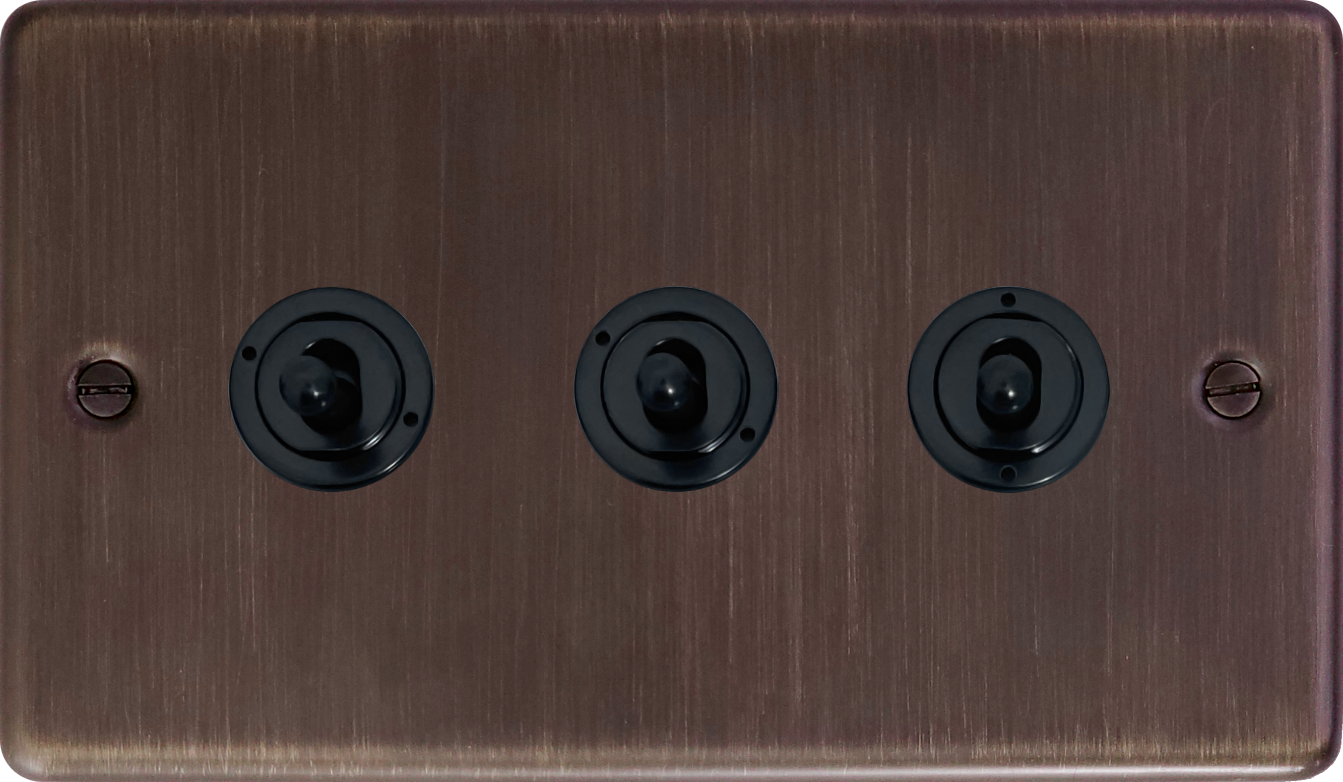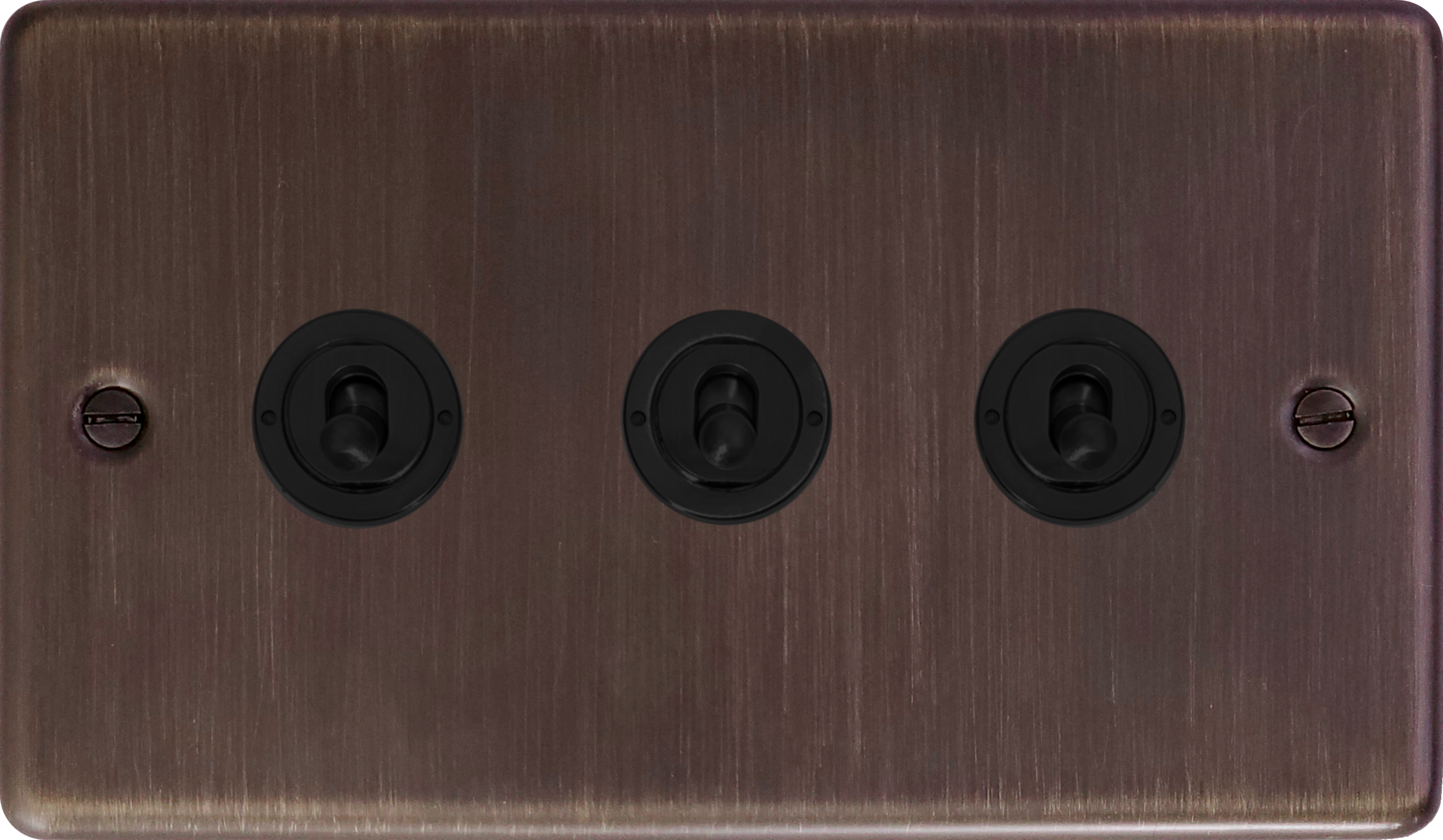 Contour Antique Copper Toggle Switch (3 Gang/Matt Black Toggles) - G+H CAC383-FBK
