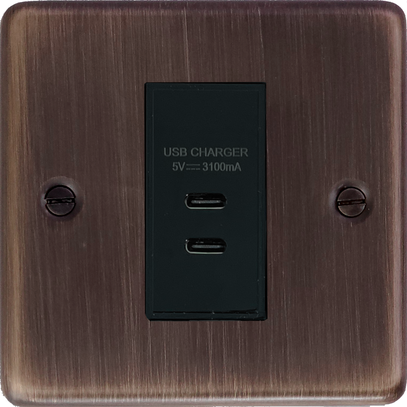 Contour Antique Copper USB Charger (2x USB-C) (1 Gang/Black Insert) - G+H CAC42B