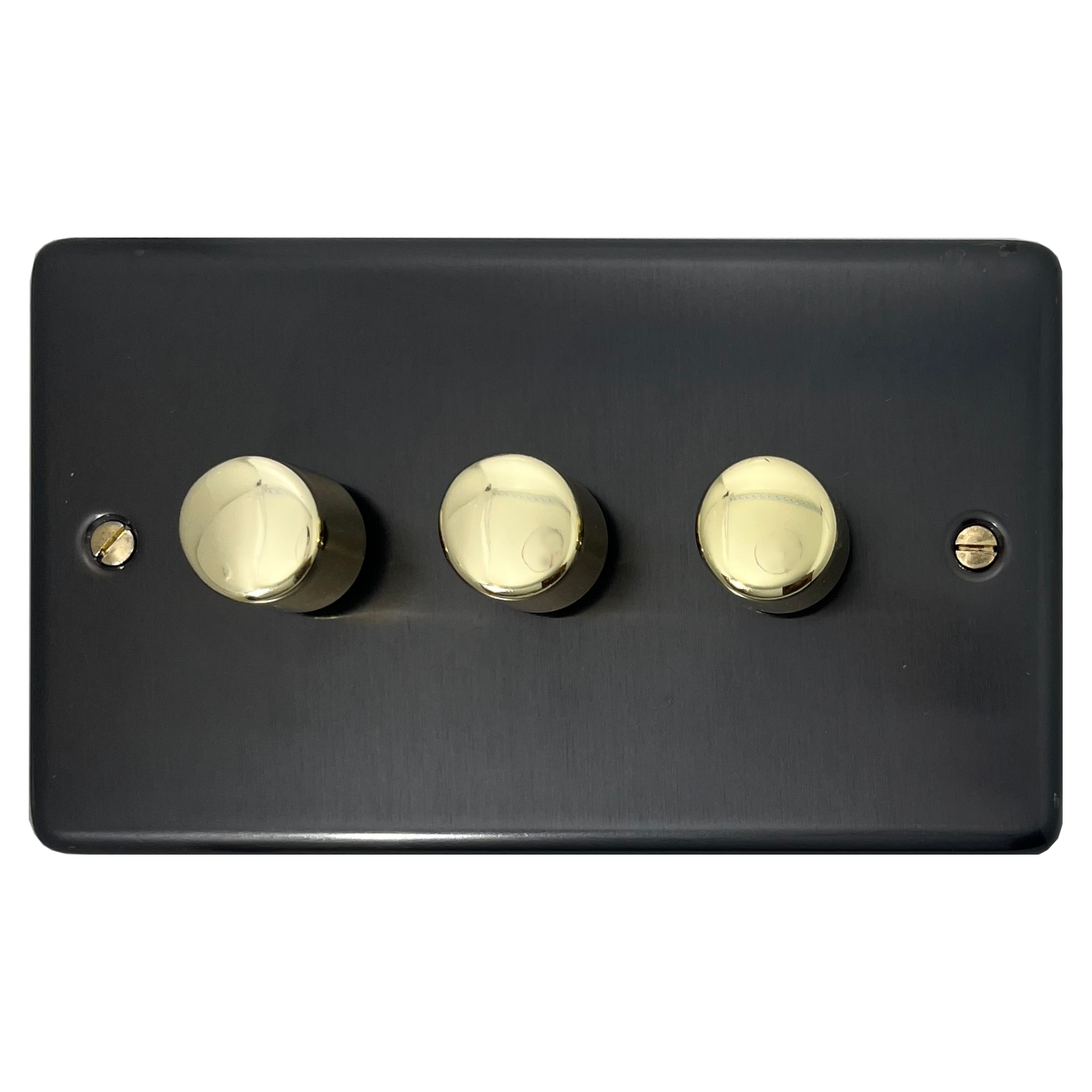 Contour Black Bronze Dimmer (3 Gang/400W/Brass Caps) - G+H CBB13-PB