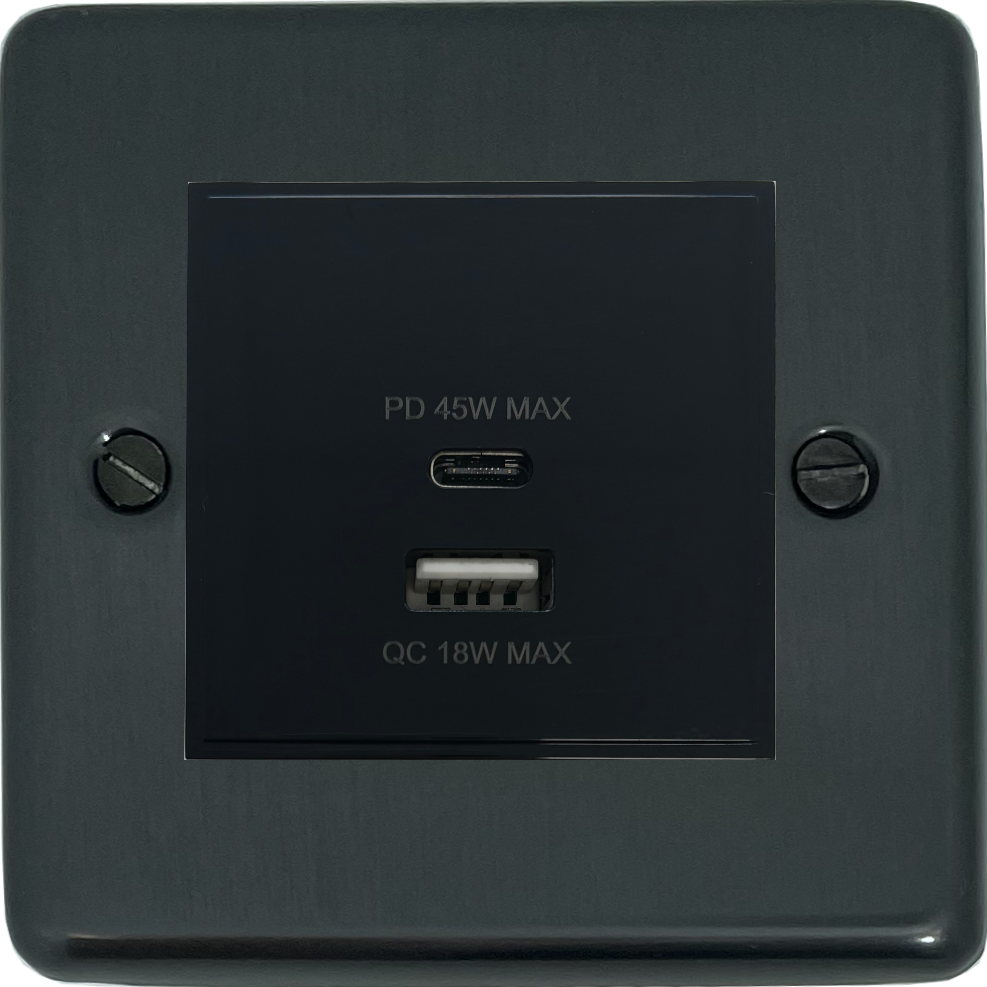 Contour Black Bronze USB Charger (Dual USB A + C Quick Charge) (1 Gang) - G+H CBB43B