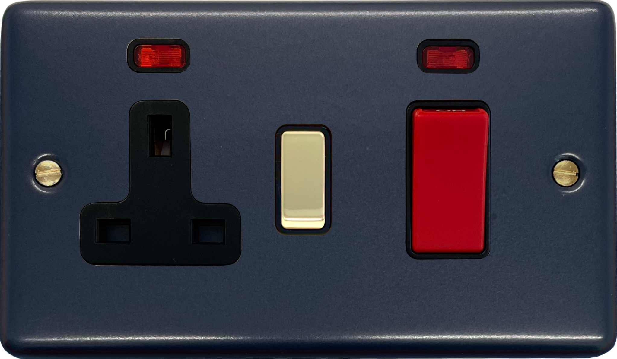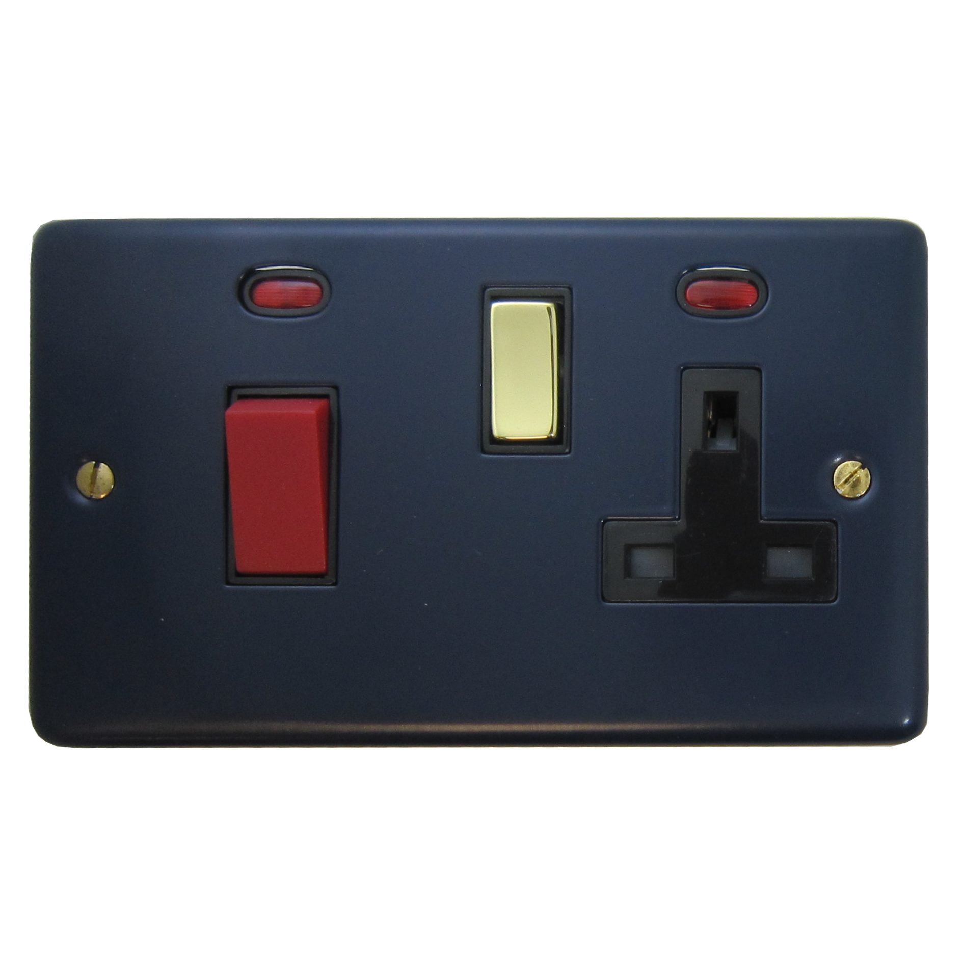Contour Blue Cooker Switch with Socket (Black Insert/Polished Brass Switch) - G+H CRB329-PB