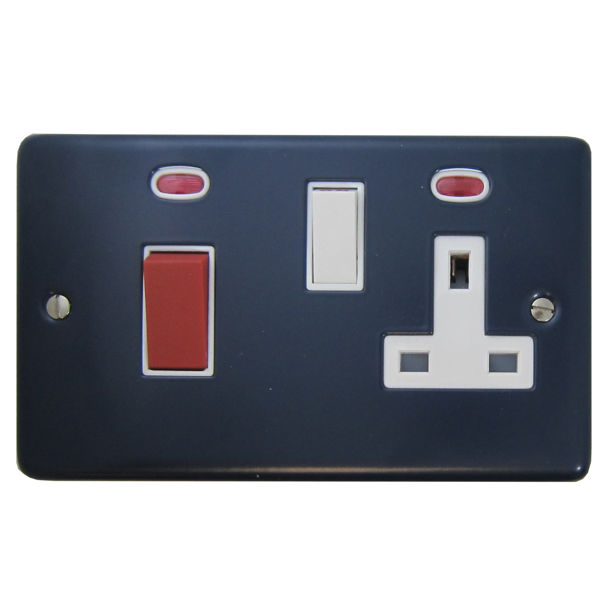 Contour Blue Cooker Switch with Socket (White Switch) - G+H CRB29W