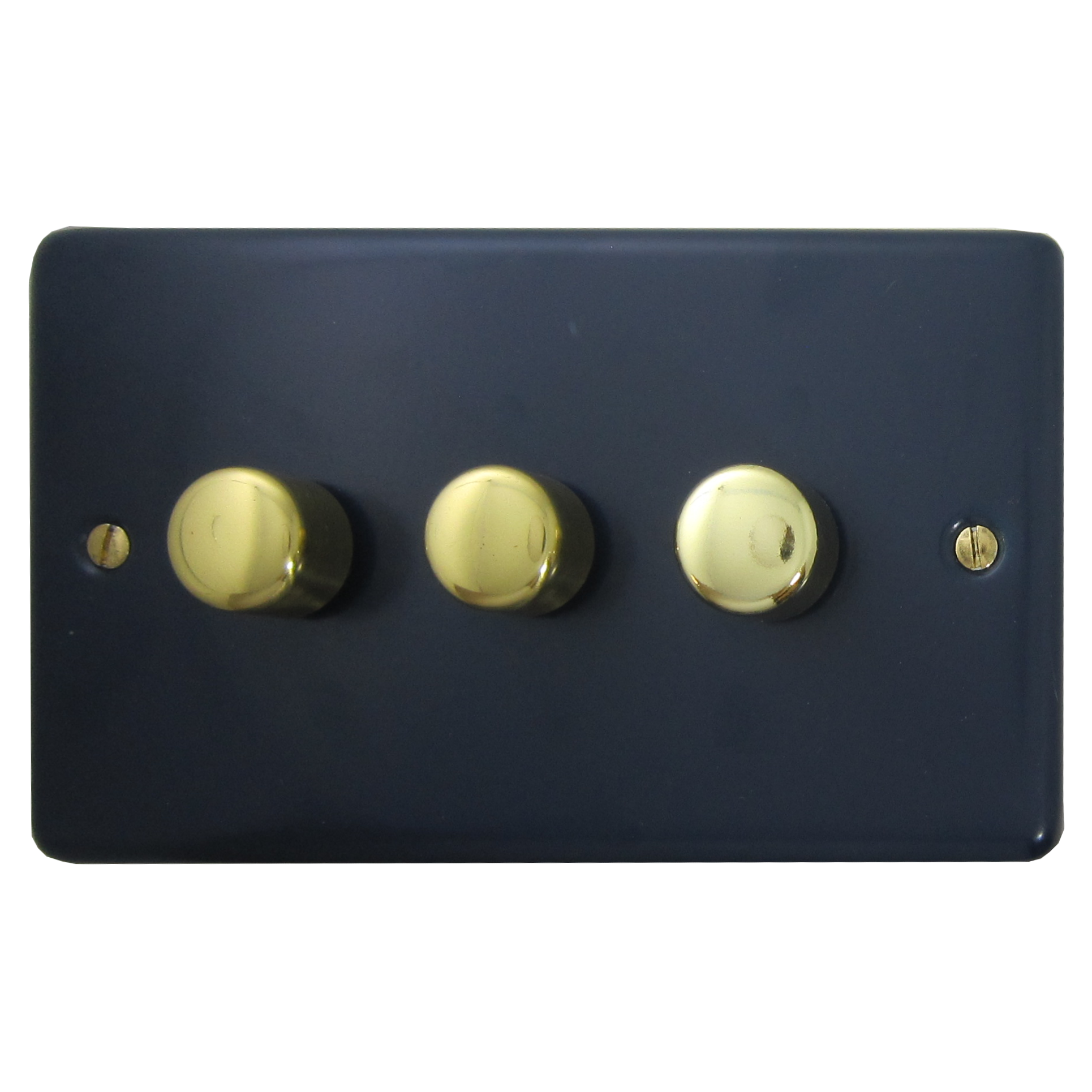 Contour Blue Dimmer (3 Gang/Polished Brass Caps) - G+H CRB13-PB